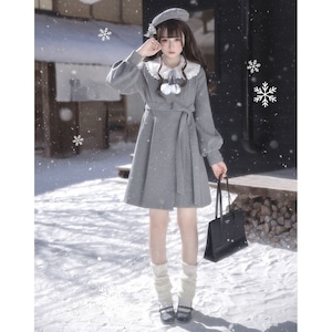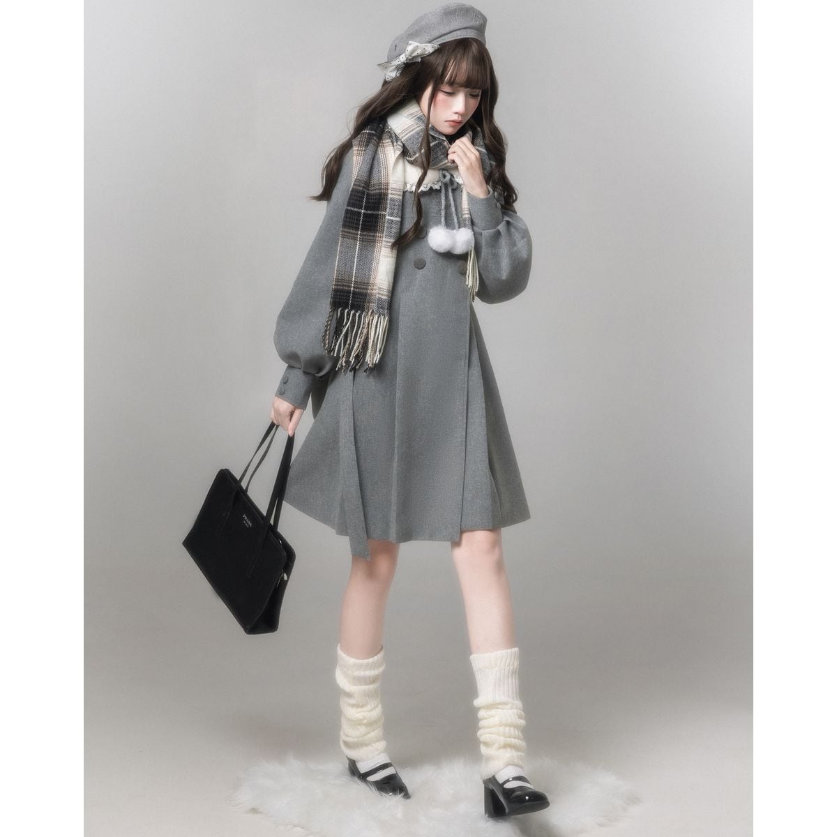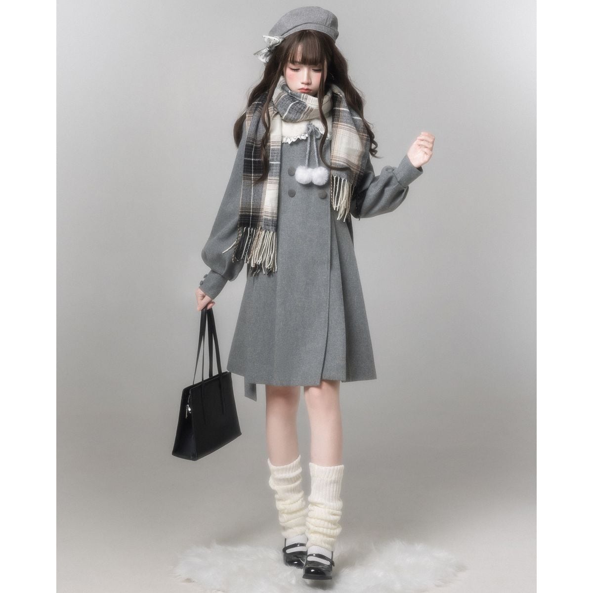ミスティグレイ・ファーポンポン・フレアロングコート:マフラー