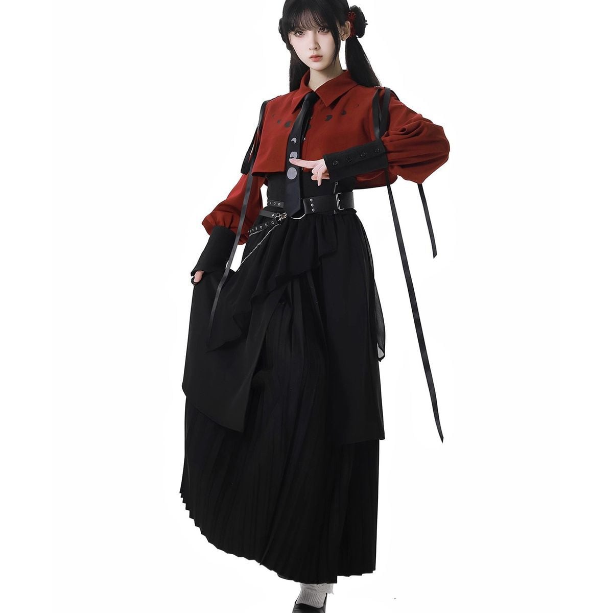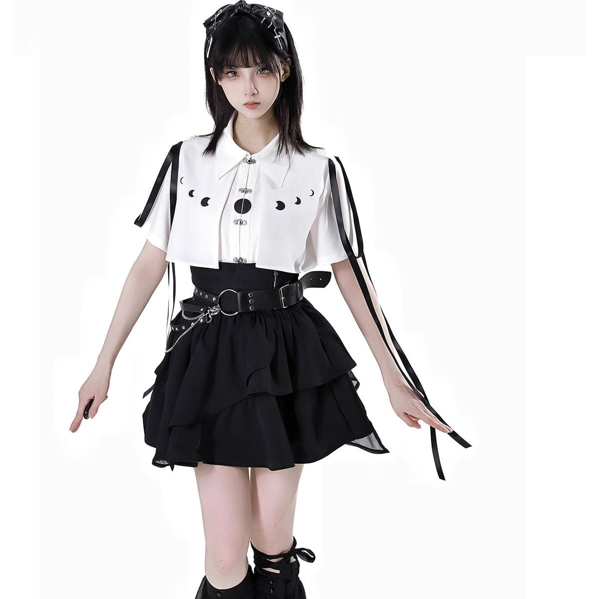 月蝕のセレナーデ・ムーンフェイズシャツ&レイヤードスカートコーデ:ミニスカート
