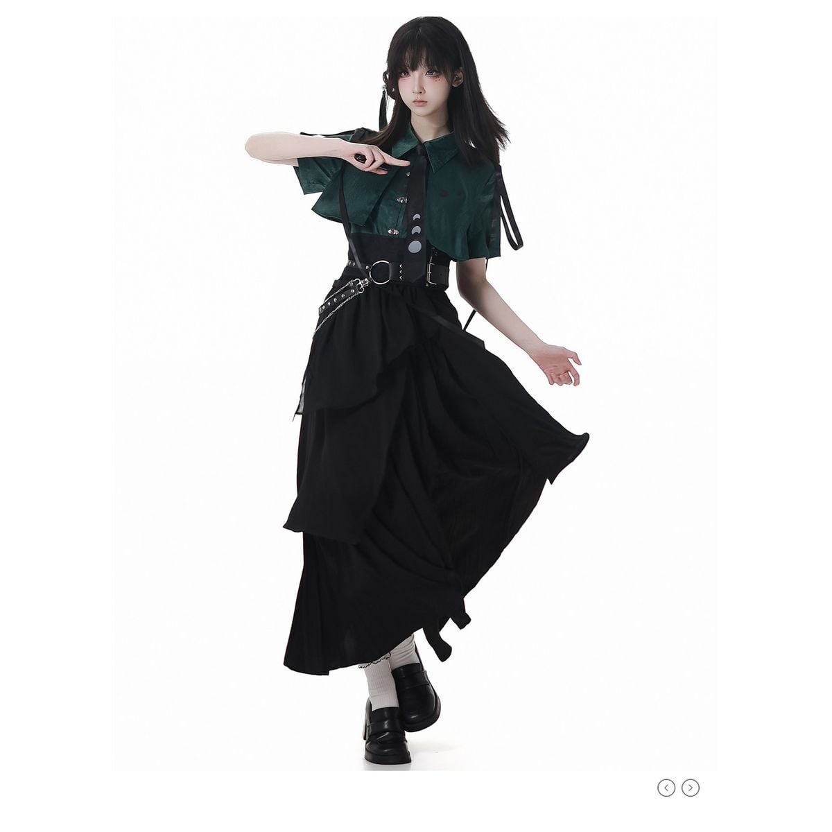 月蝕のセレナーデ・ムーンフェイズシャツ&レイヤードスカートコーデ:ロングスカート