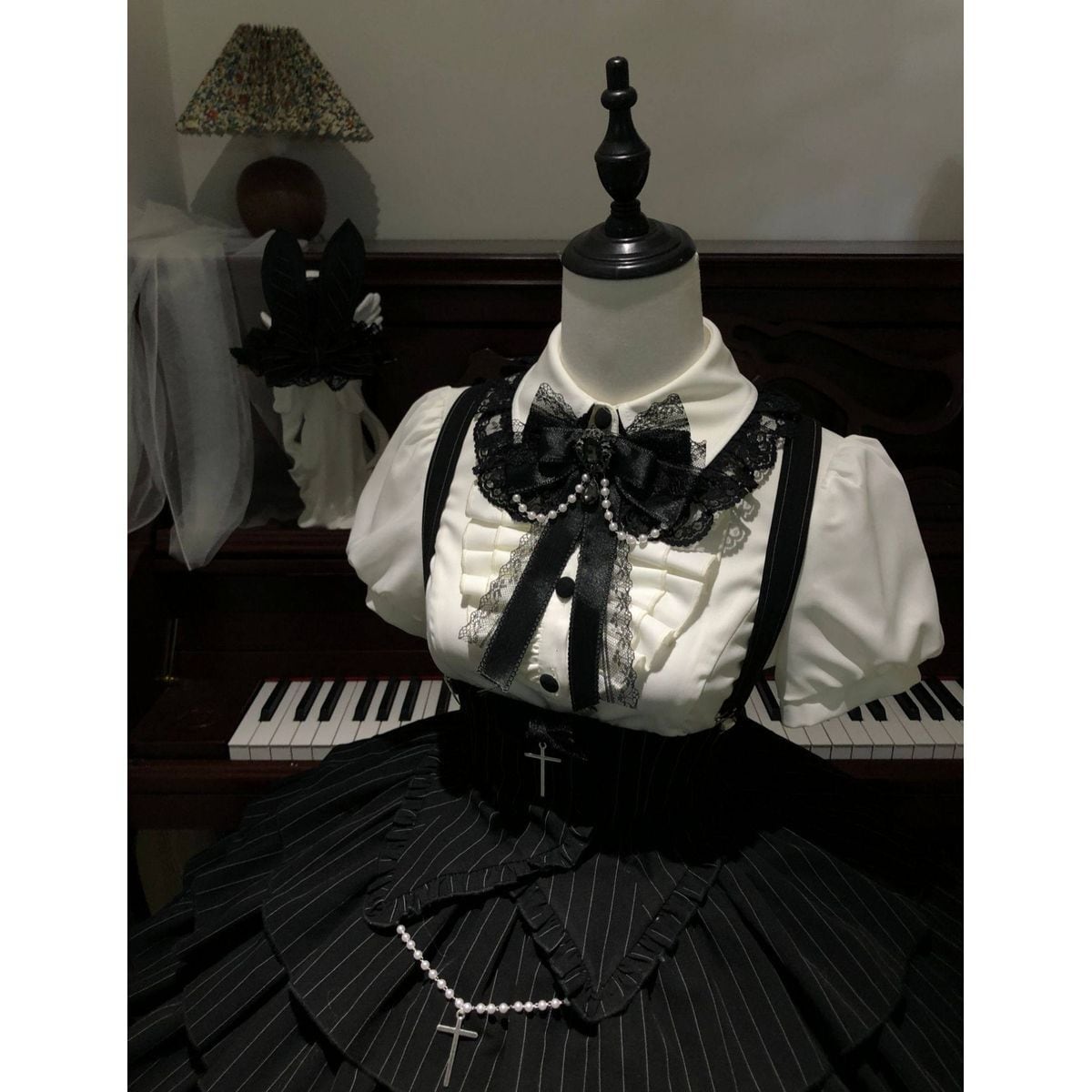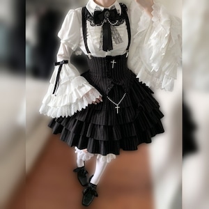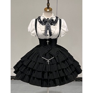 真夜中の礼拝堂・ゴシックストライプ・モノトーンセットアップ:セットアップ+つけ袖