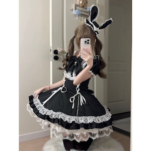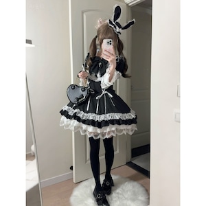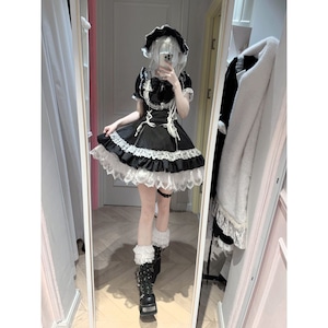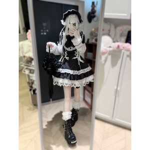 ゴシックつけ袖付きモノトーンストライプワンピース
