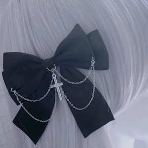 チェーン付きモノトーンリボン髪飾り