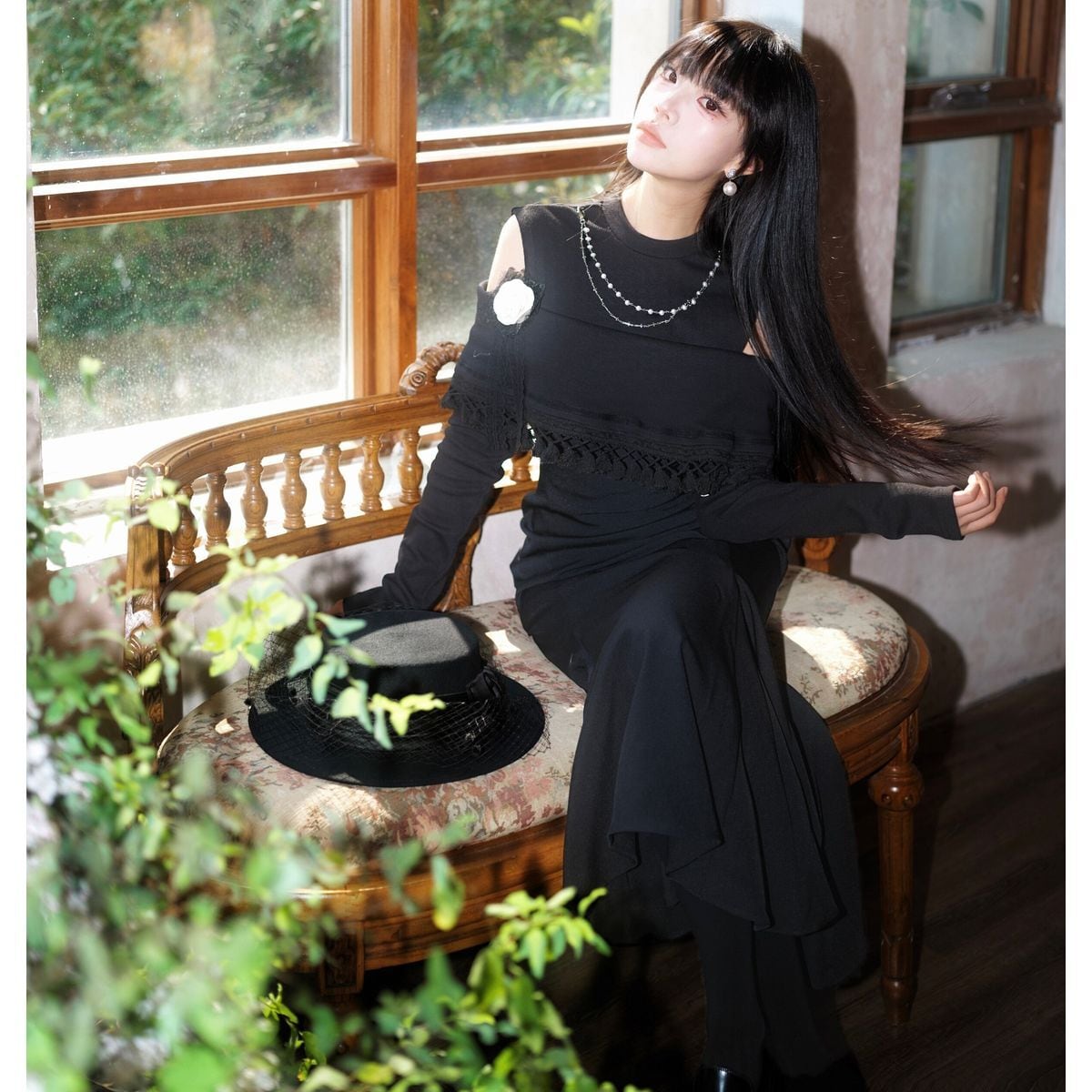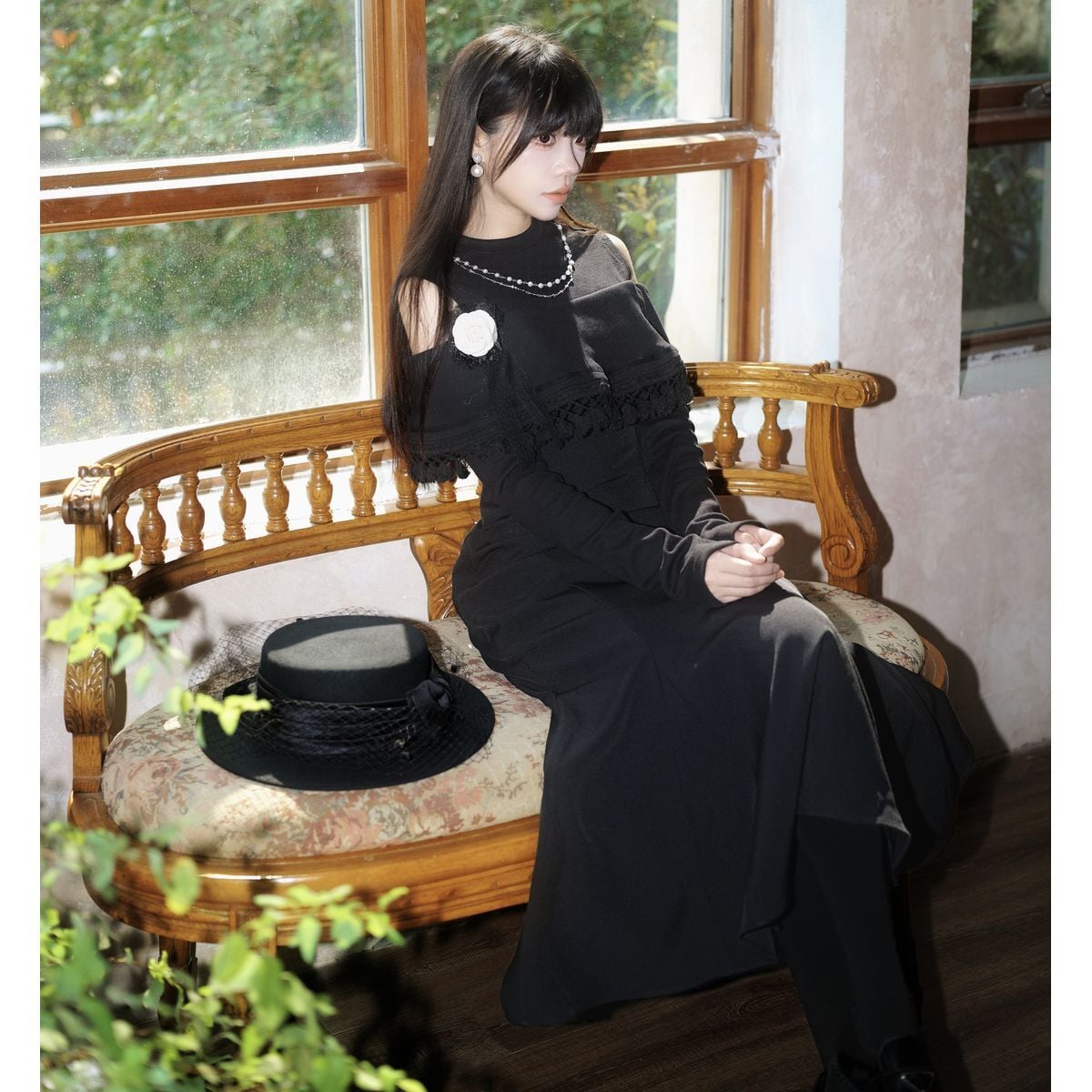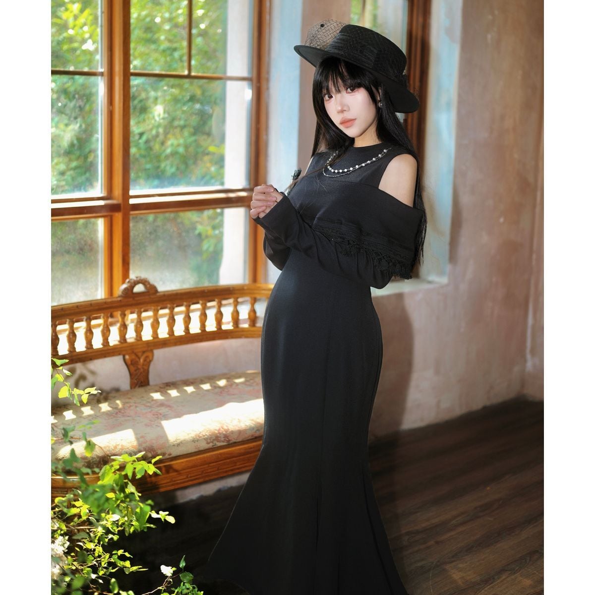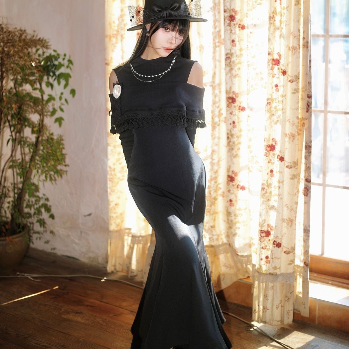 漆黒エレガントオープンショルダードレス