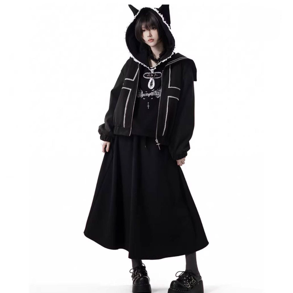 サブカル系ネコミミクロスコーデセットアップ:レッグウォーマー