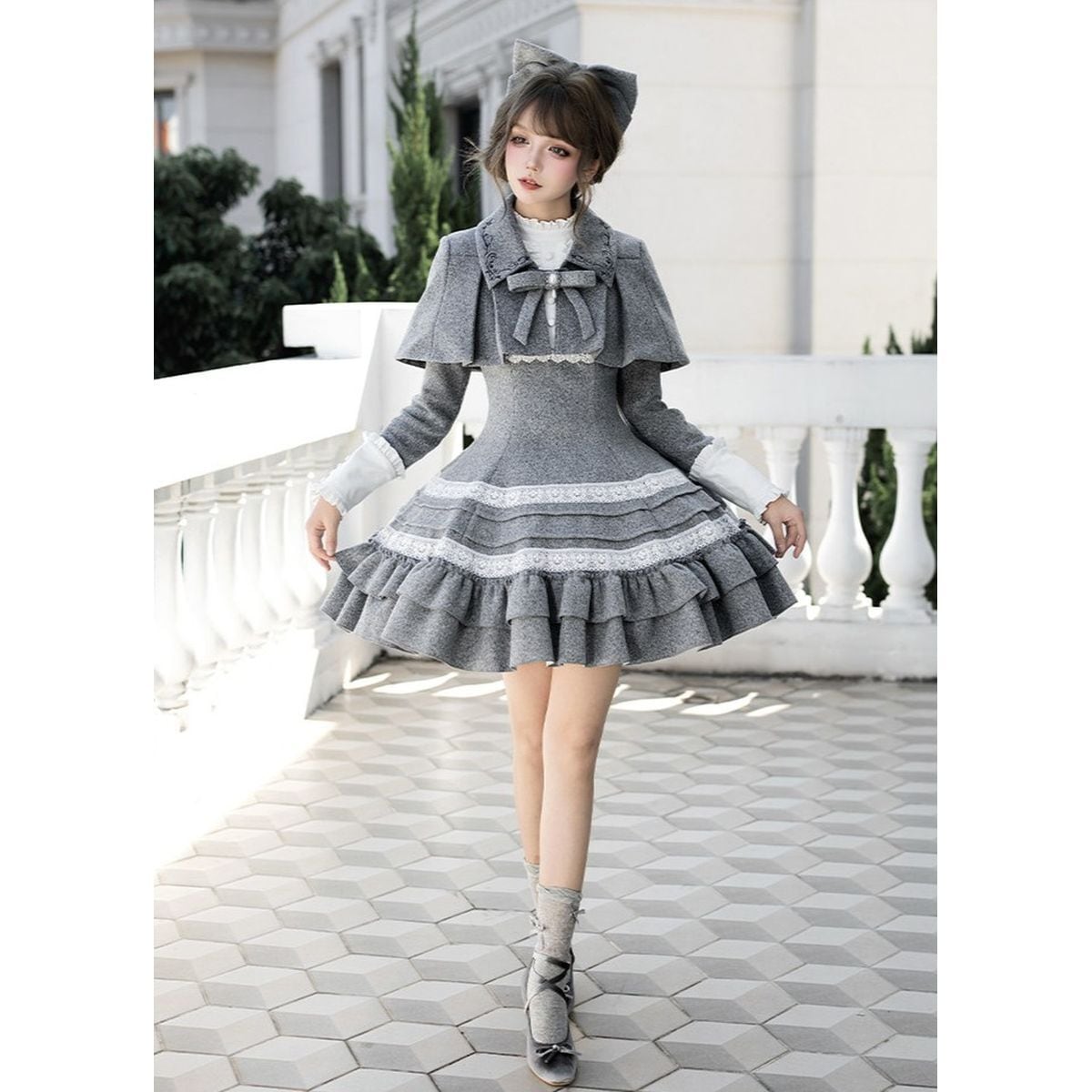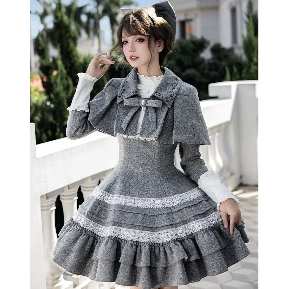 令嬢風ケープ付クラシカルドールドレス:ワンピースのみ