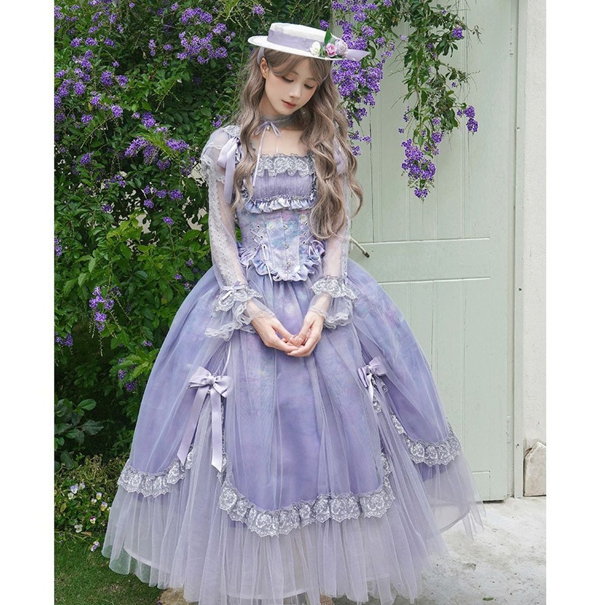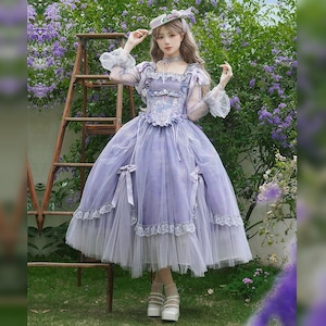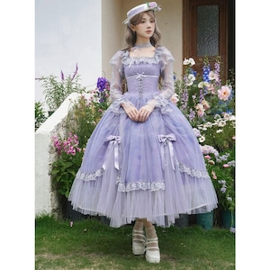 秘密の花園のシアーチュール・パフスリーブドレス