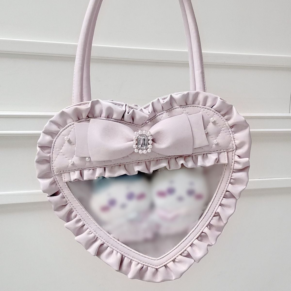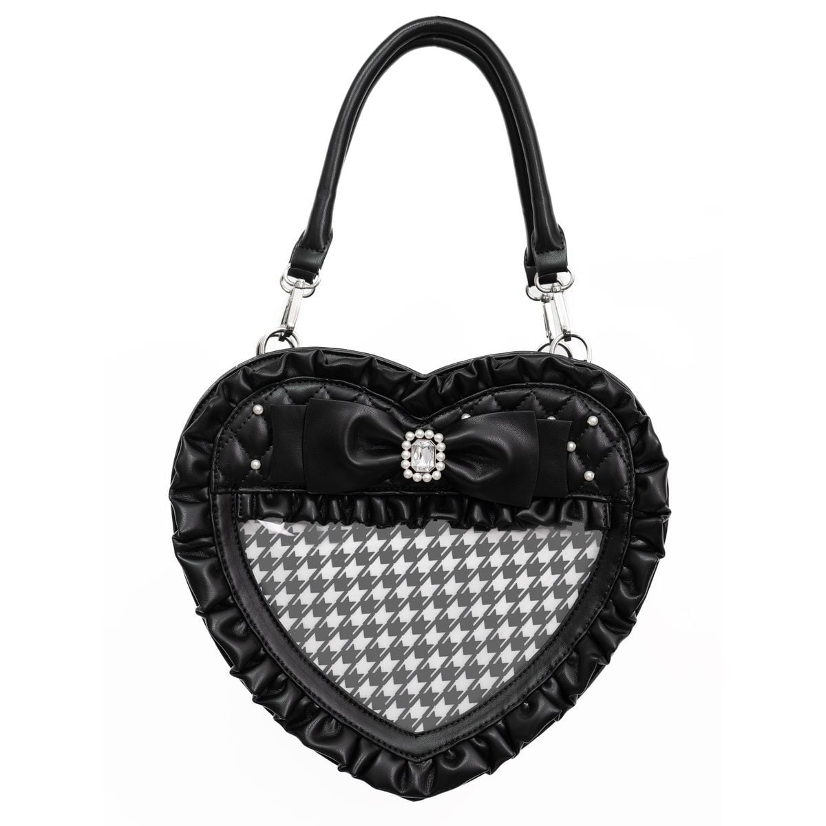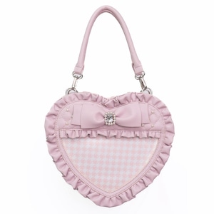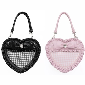 千鳥格子クリア窓・キルティングハートバッグ