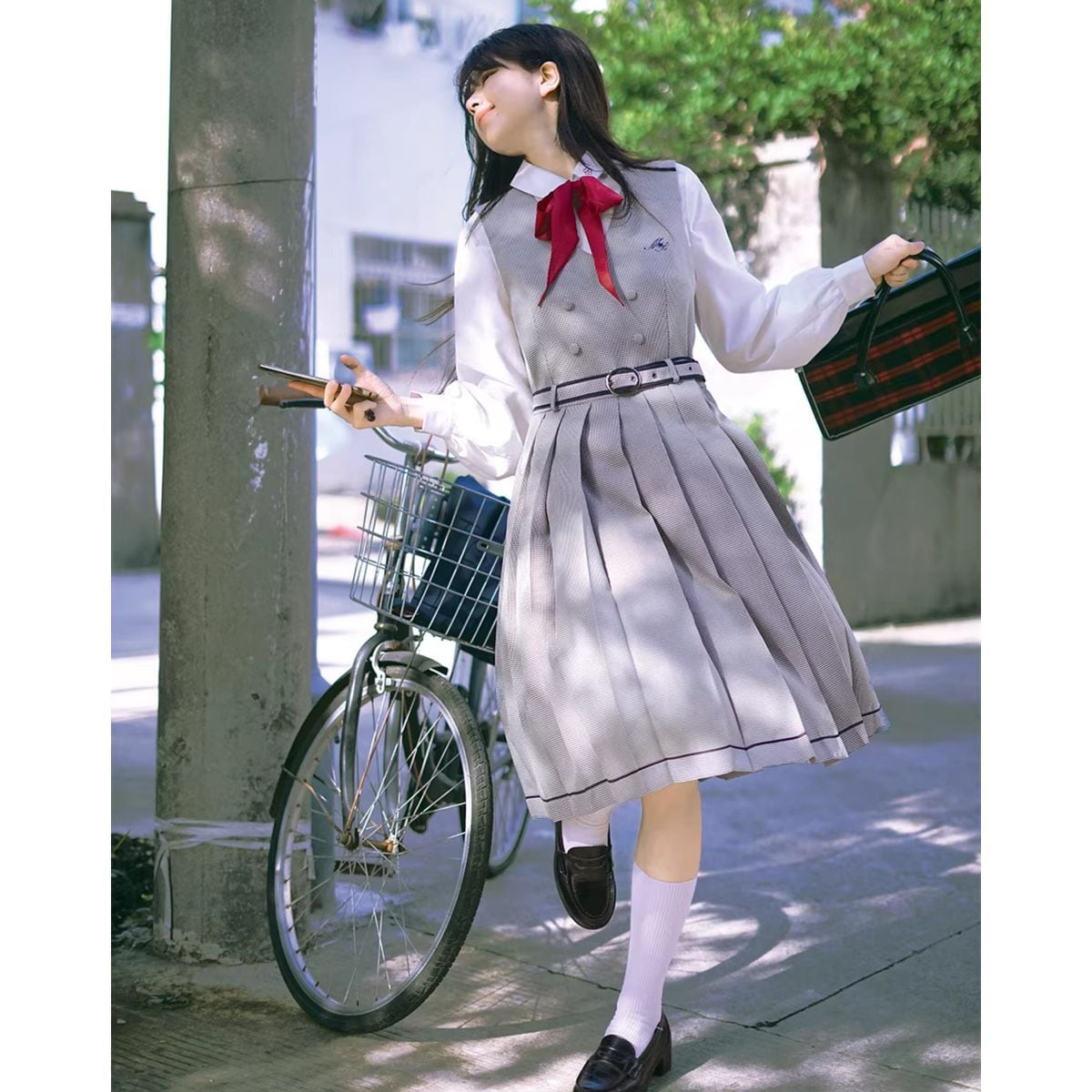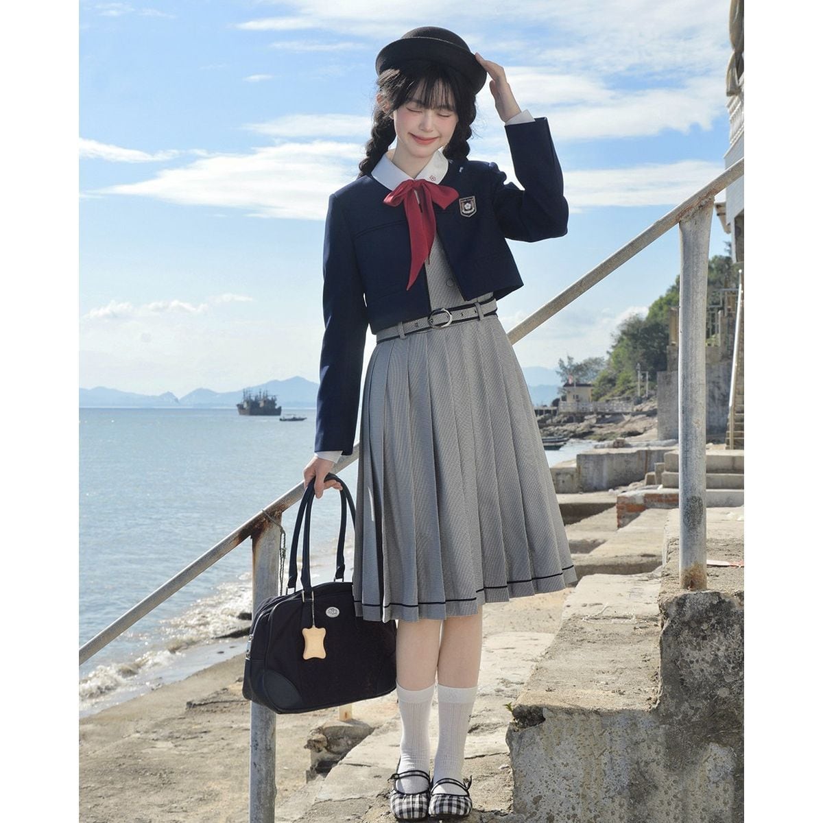 灯台の帰り道 〜グレンチェックプリーツ制服セット〜:ジャンパースカート