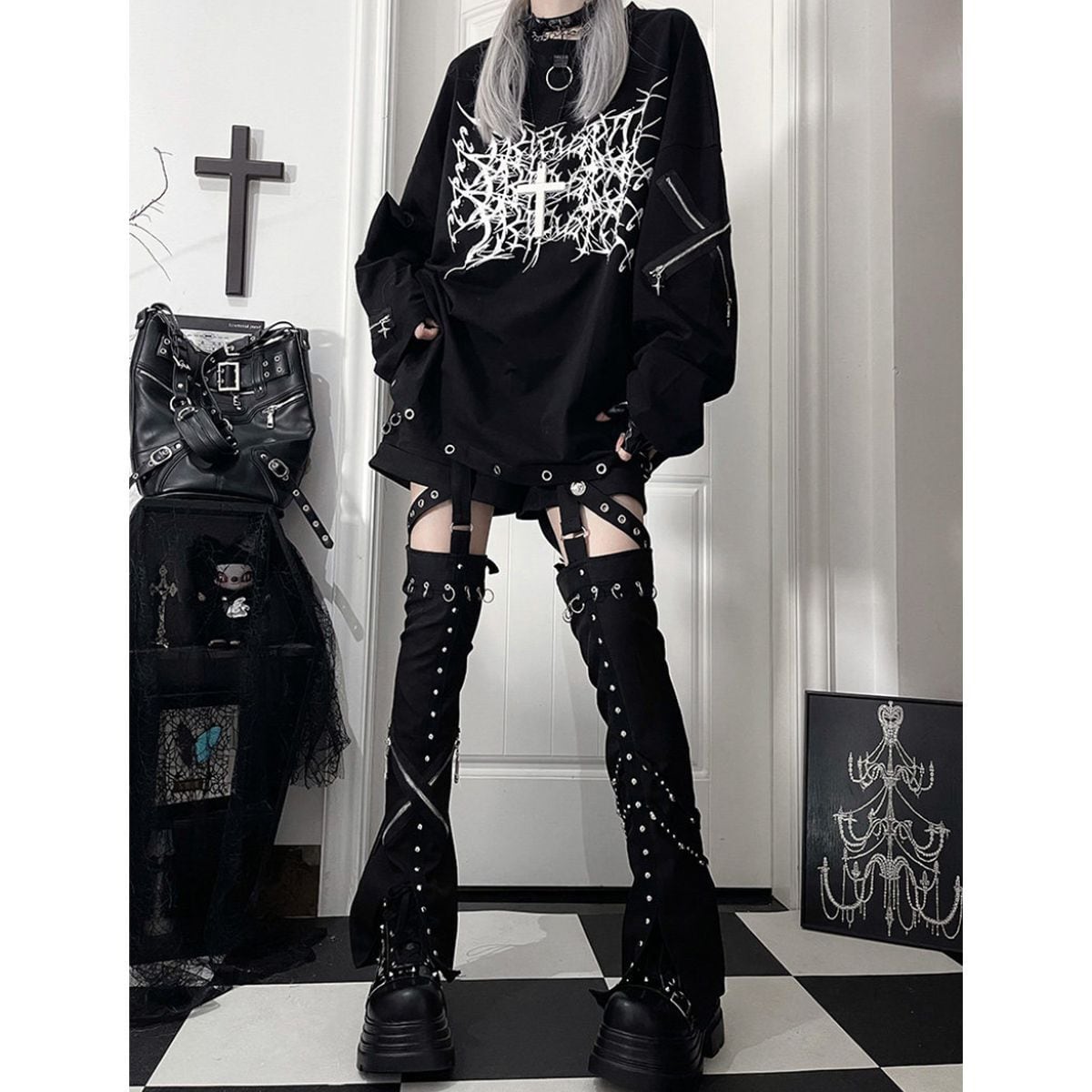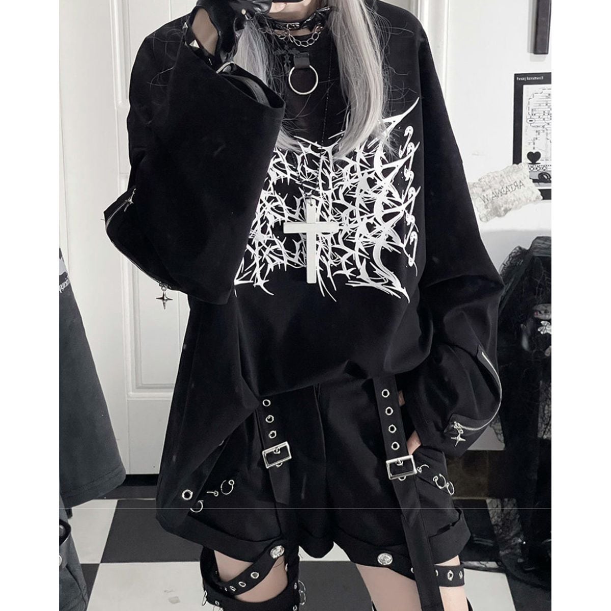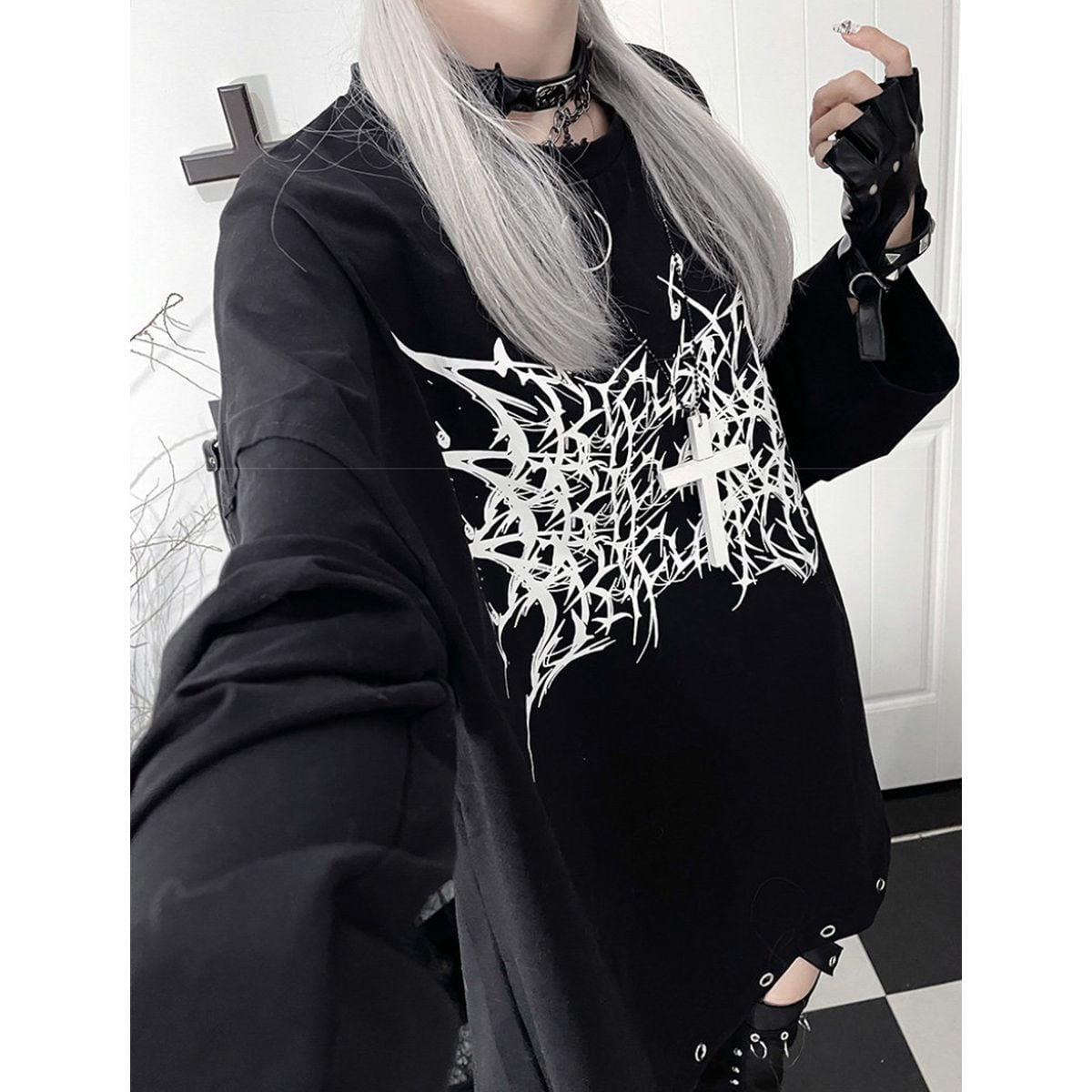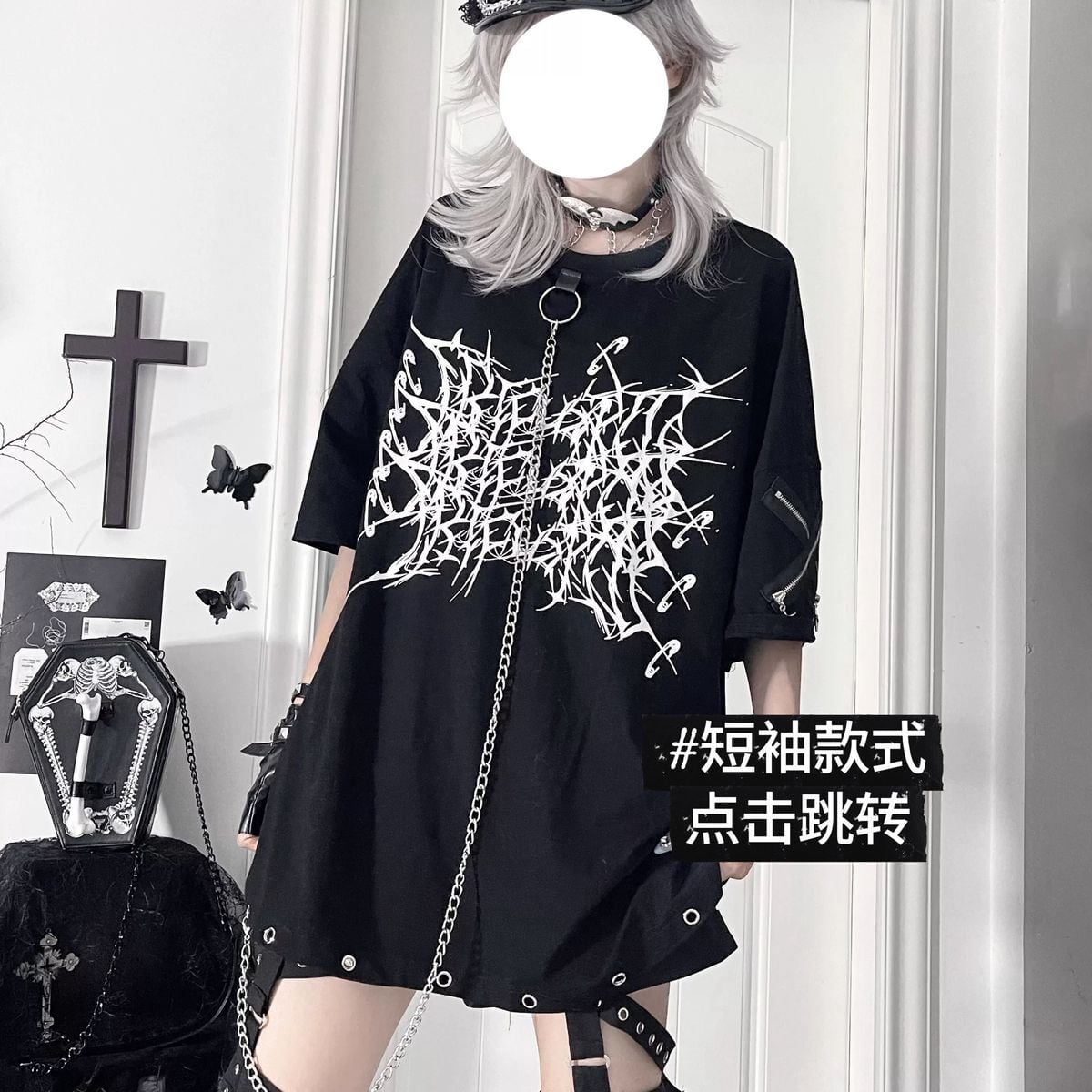 サブカル系ゴシックオーバーサイズトップス