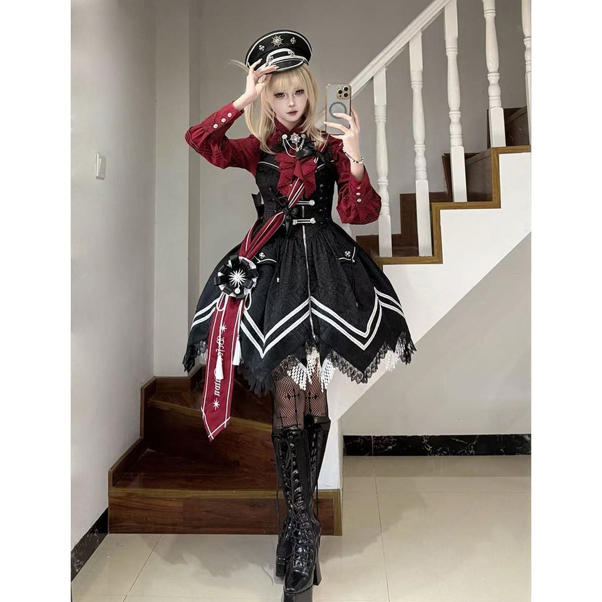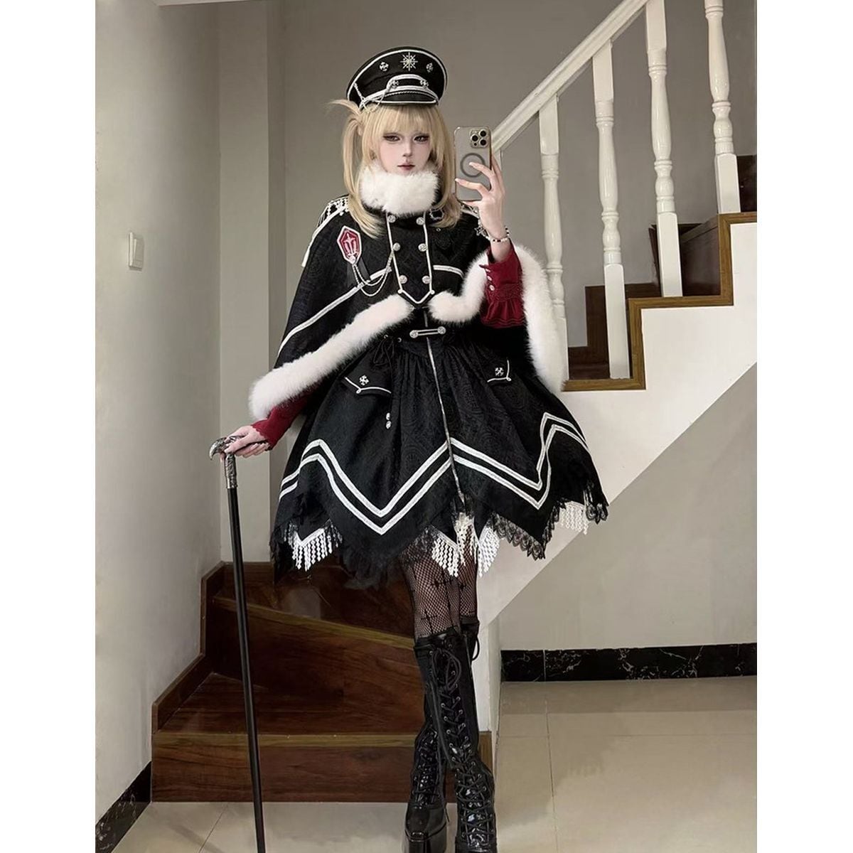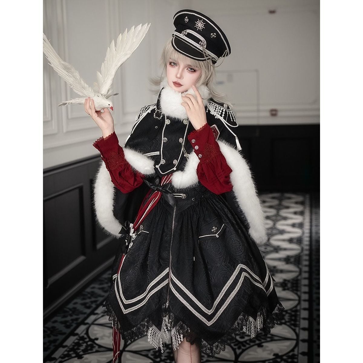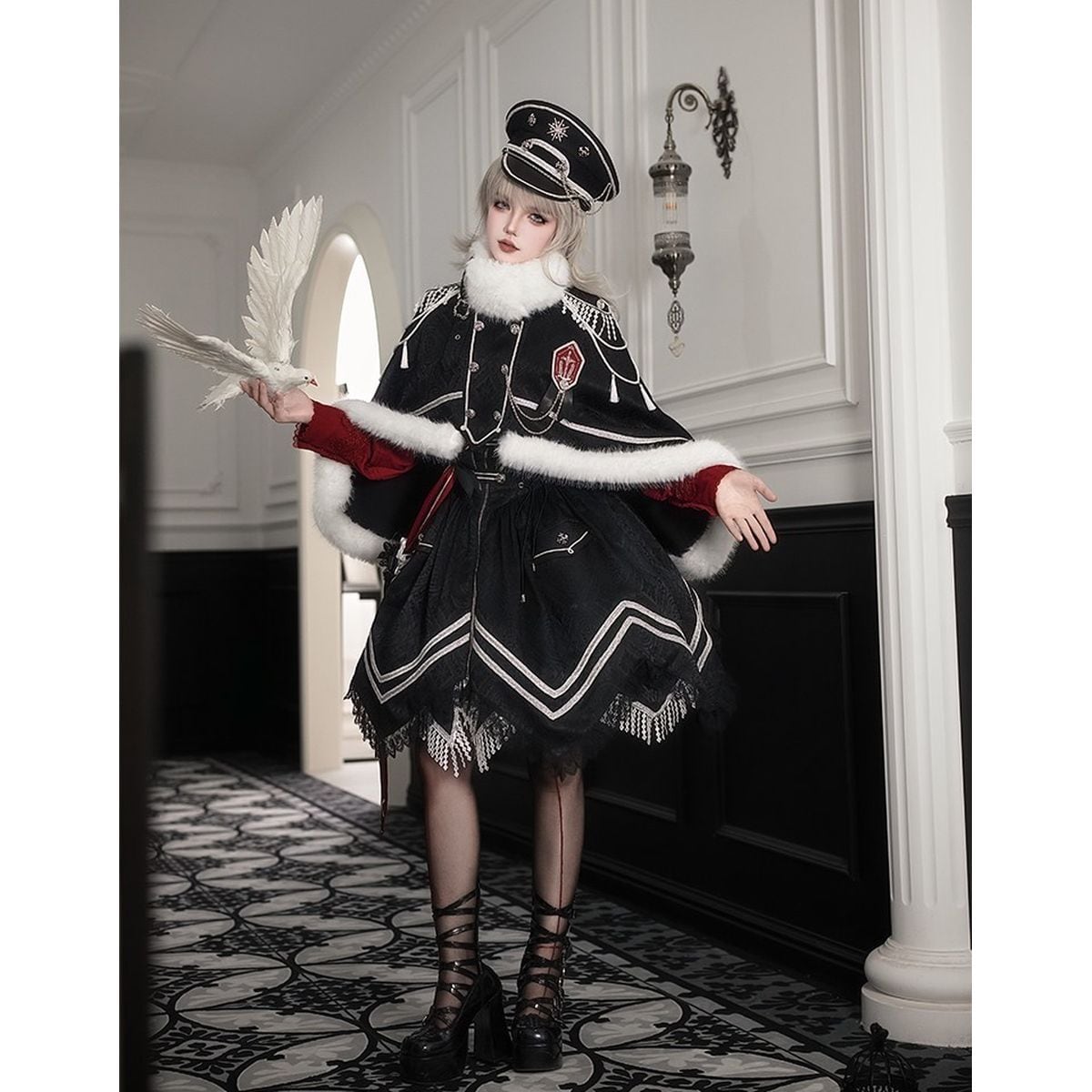 近衛聖騎士・スノーケープ・ミリタリー軍服ロリータセット:帽子、サッシュ