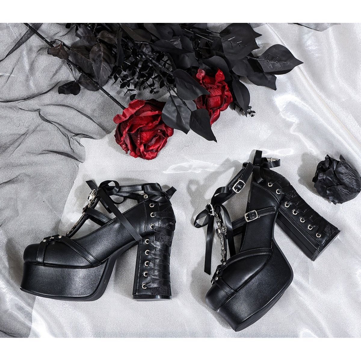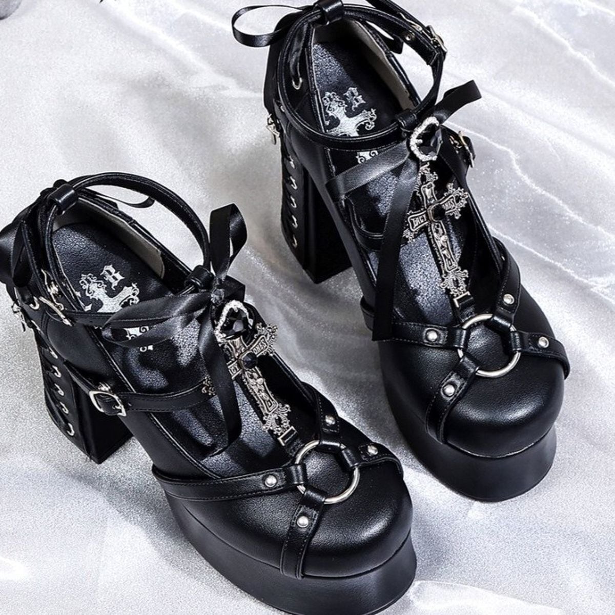 断罪のロザリオ・レースアップ厚底パンプス
