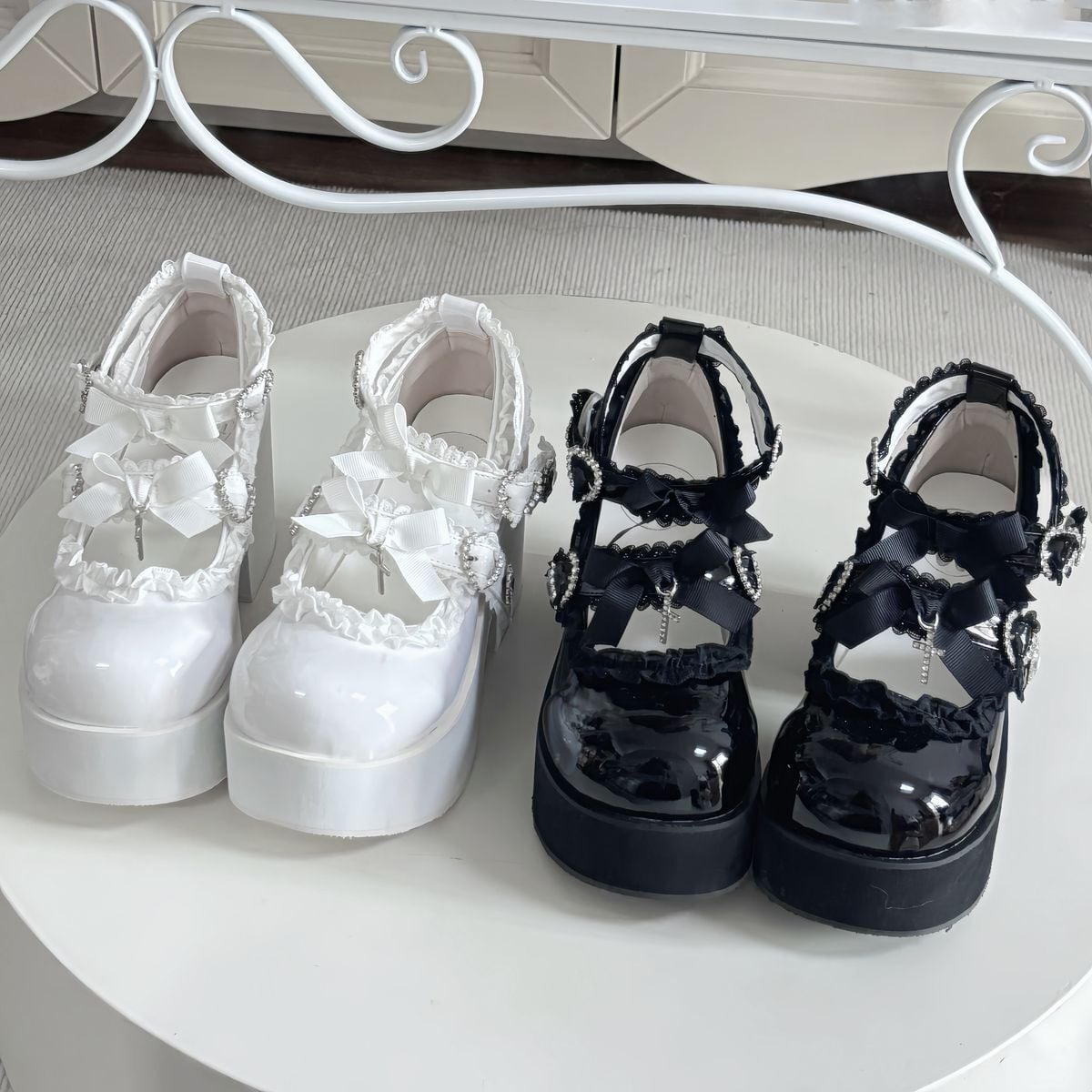 ハート十字リボン厚底パンプス