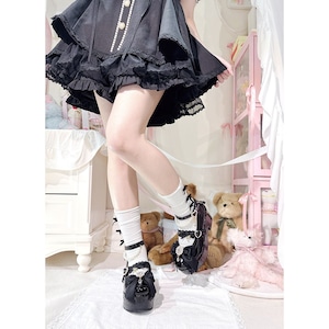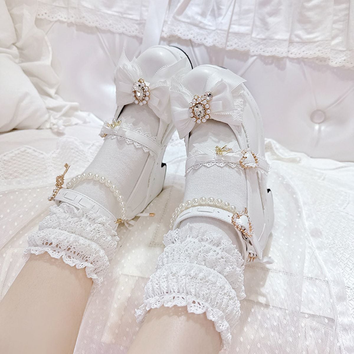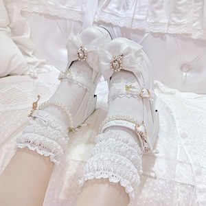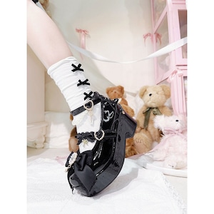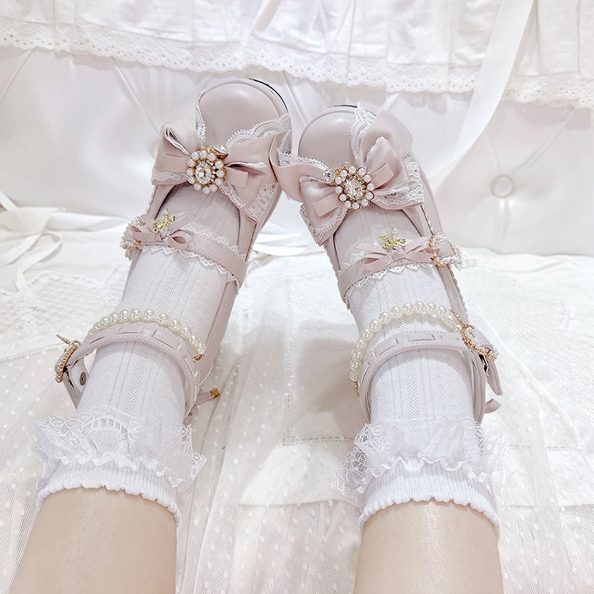 リボン&パールデコレースアップ厚底パンプス