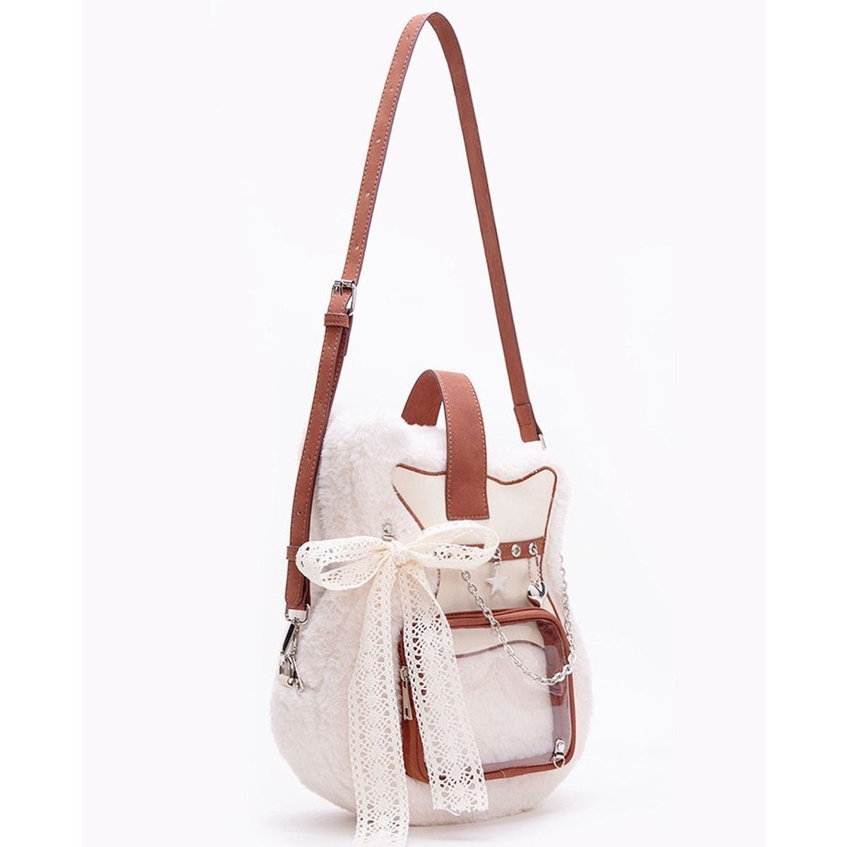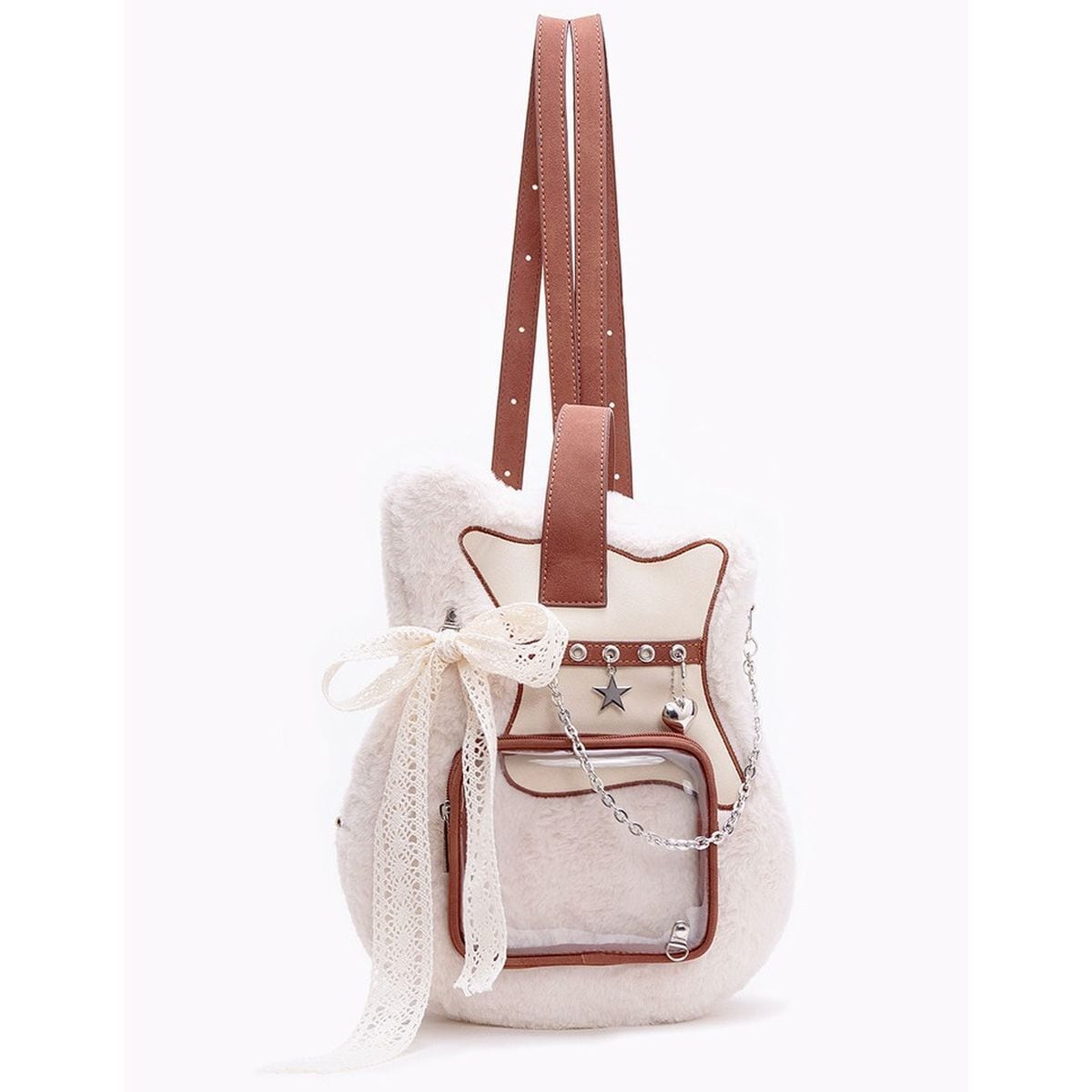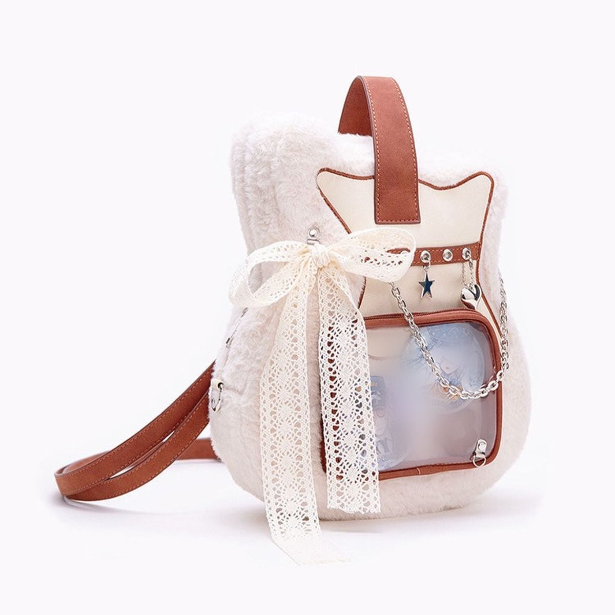 レースリボン&チェーンのギター型ファー痛リュック