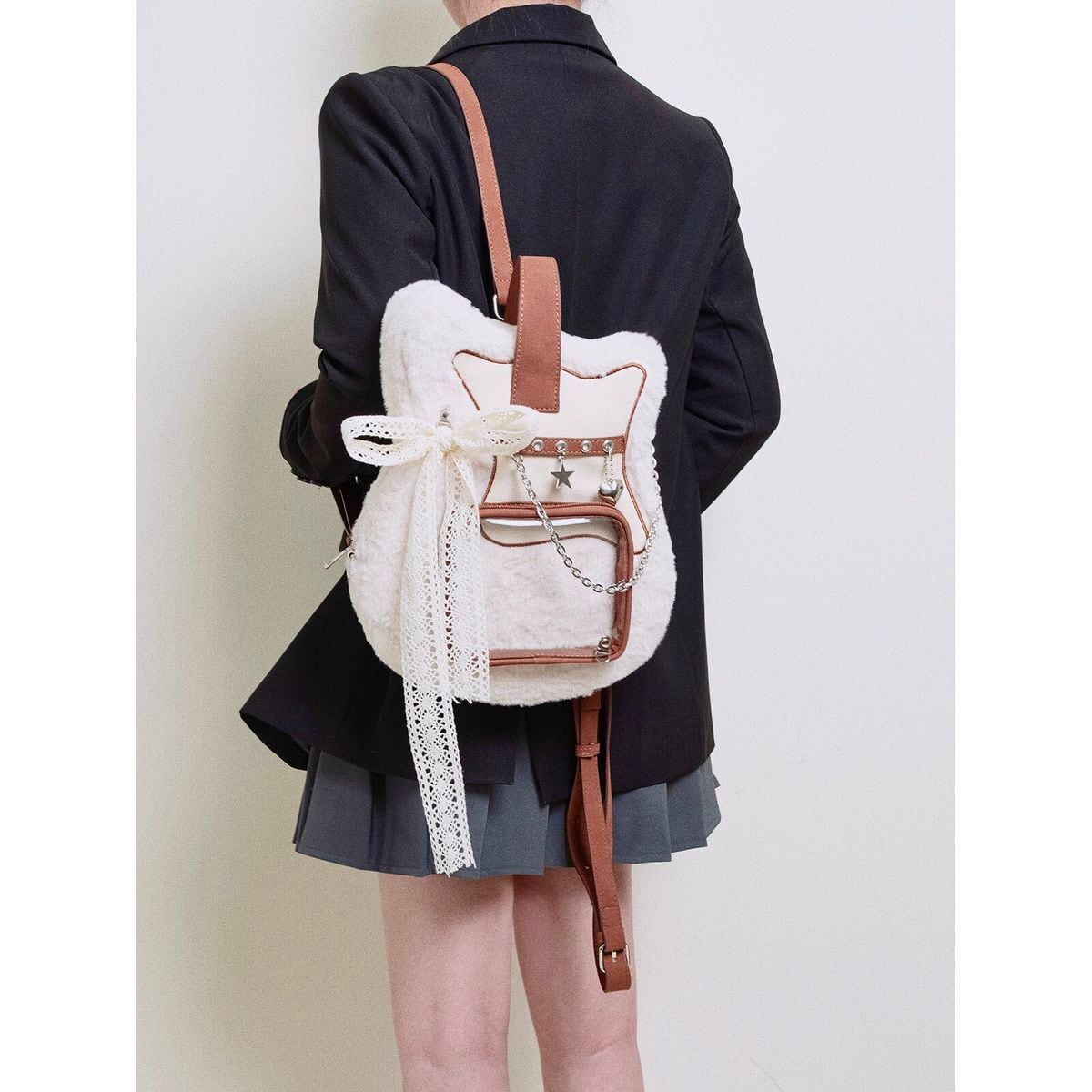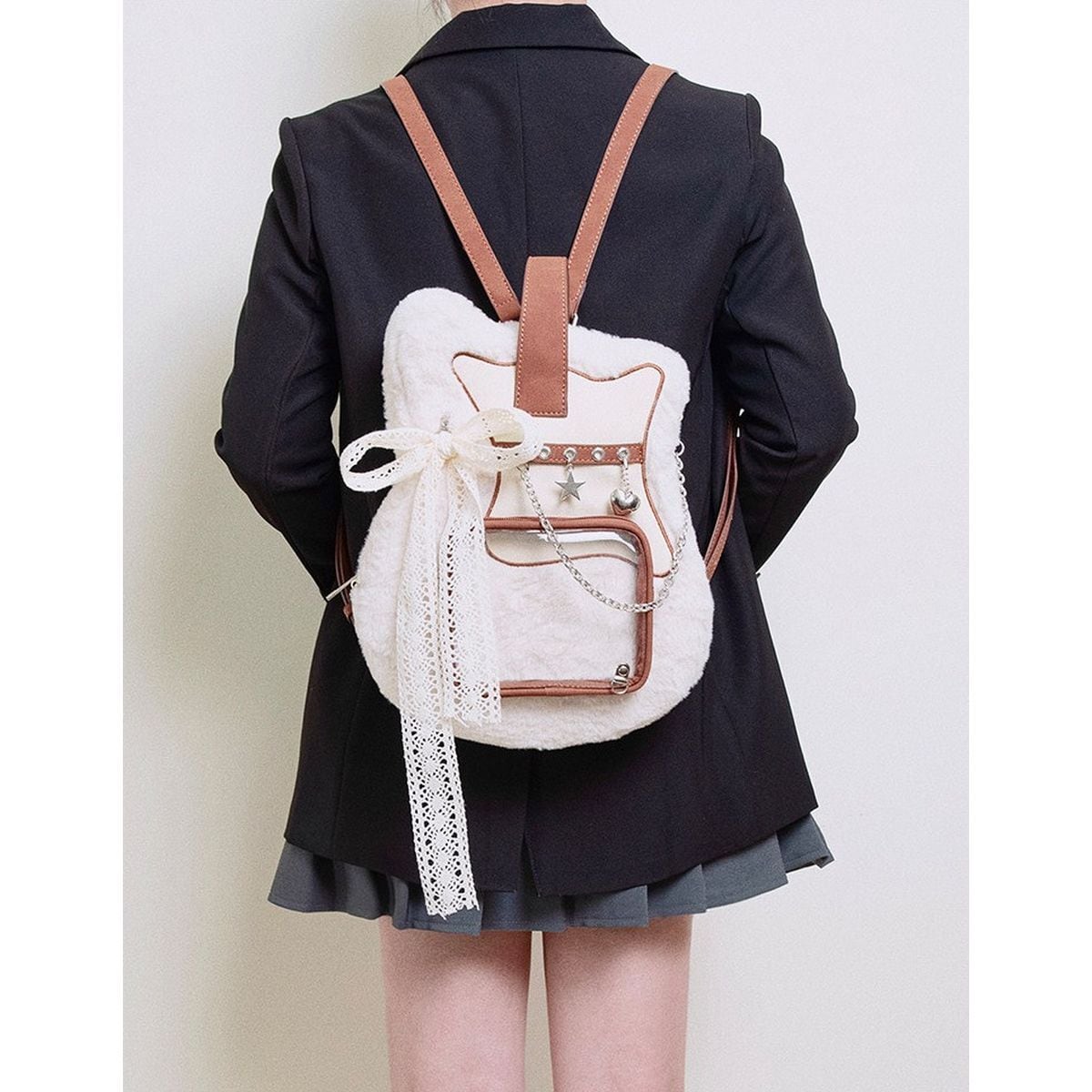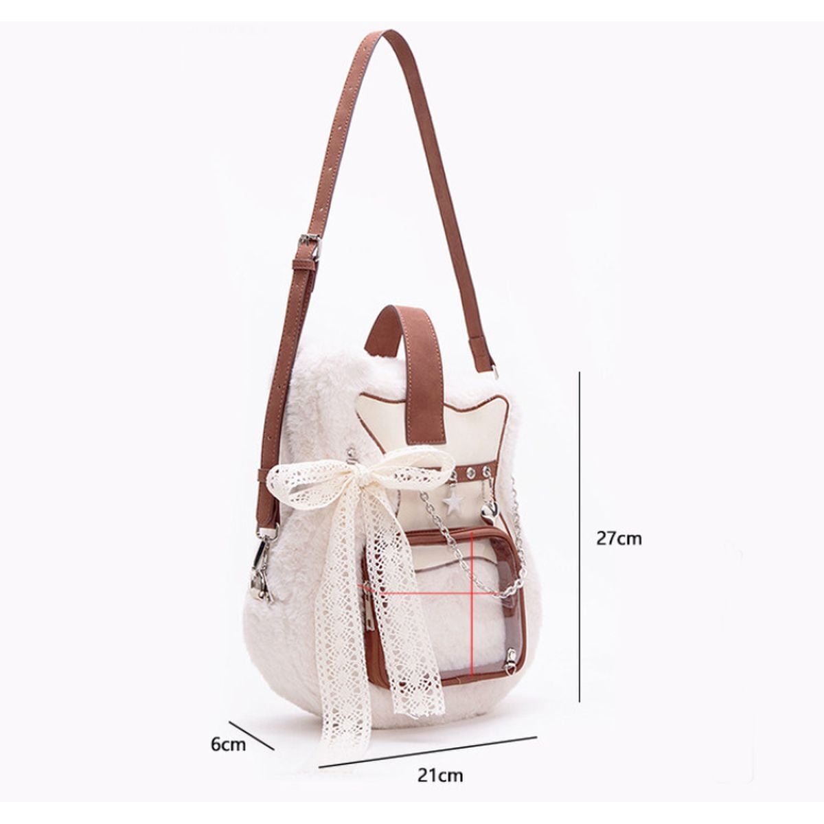 レースリボン&チェーンのギター型ファー痛リュック