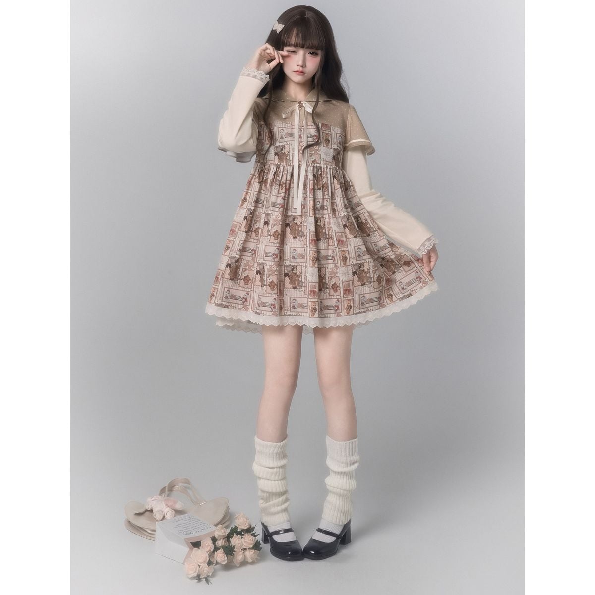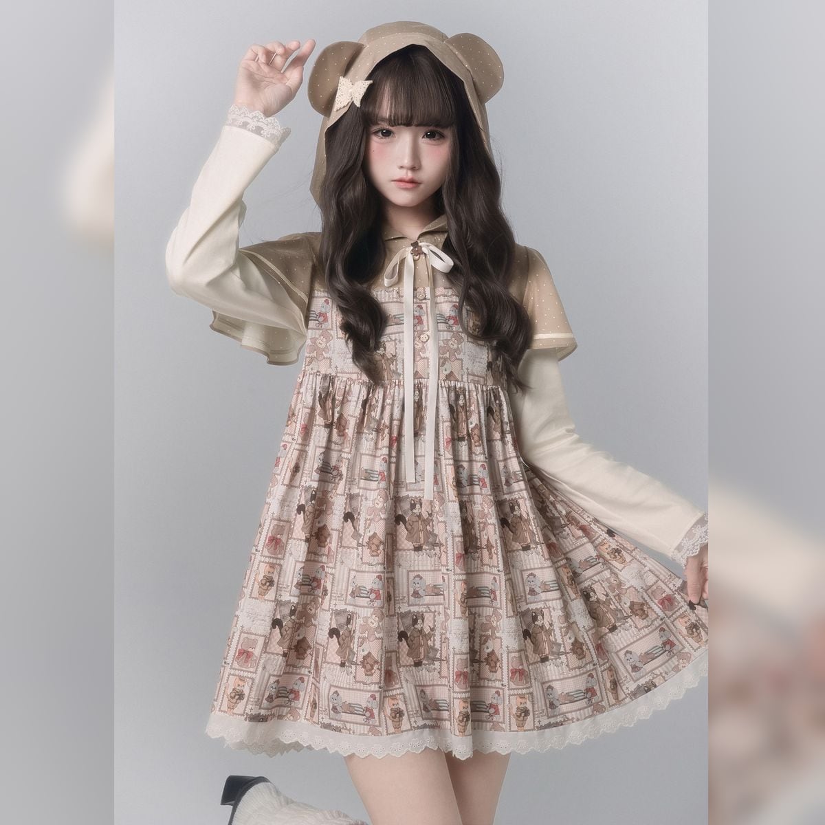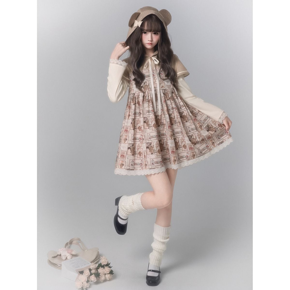 ベア耳付きフードカントリーワンピース