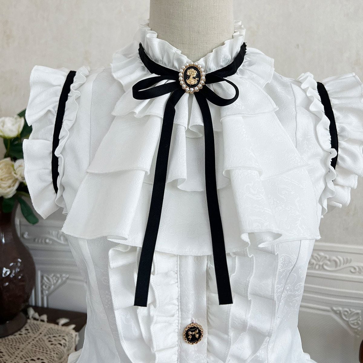フレンチガーリーパールリボンセットアップ:トップス