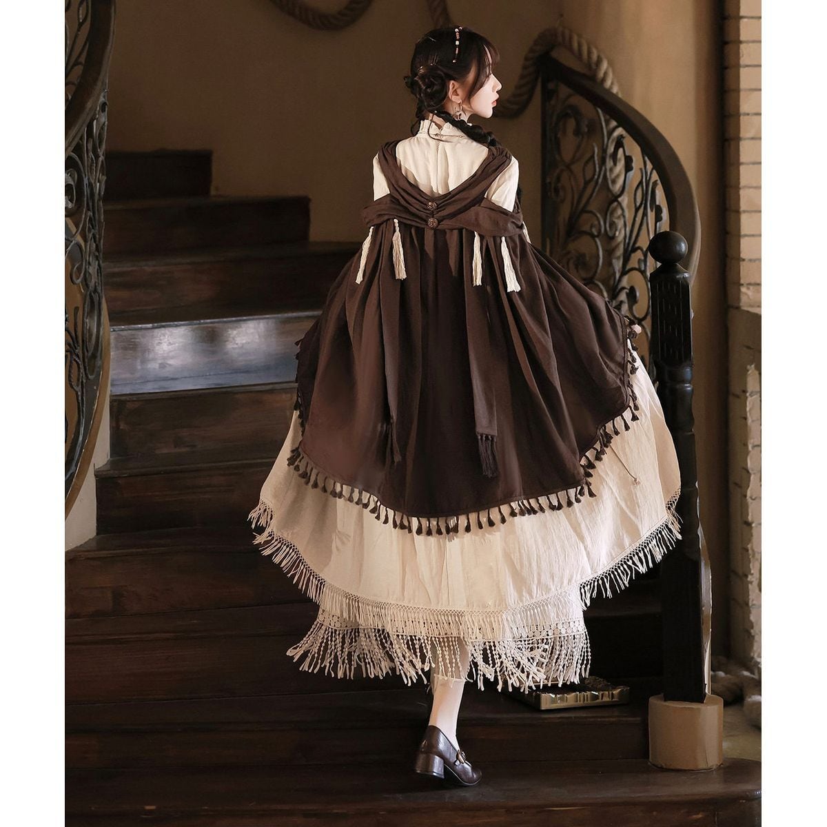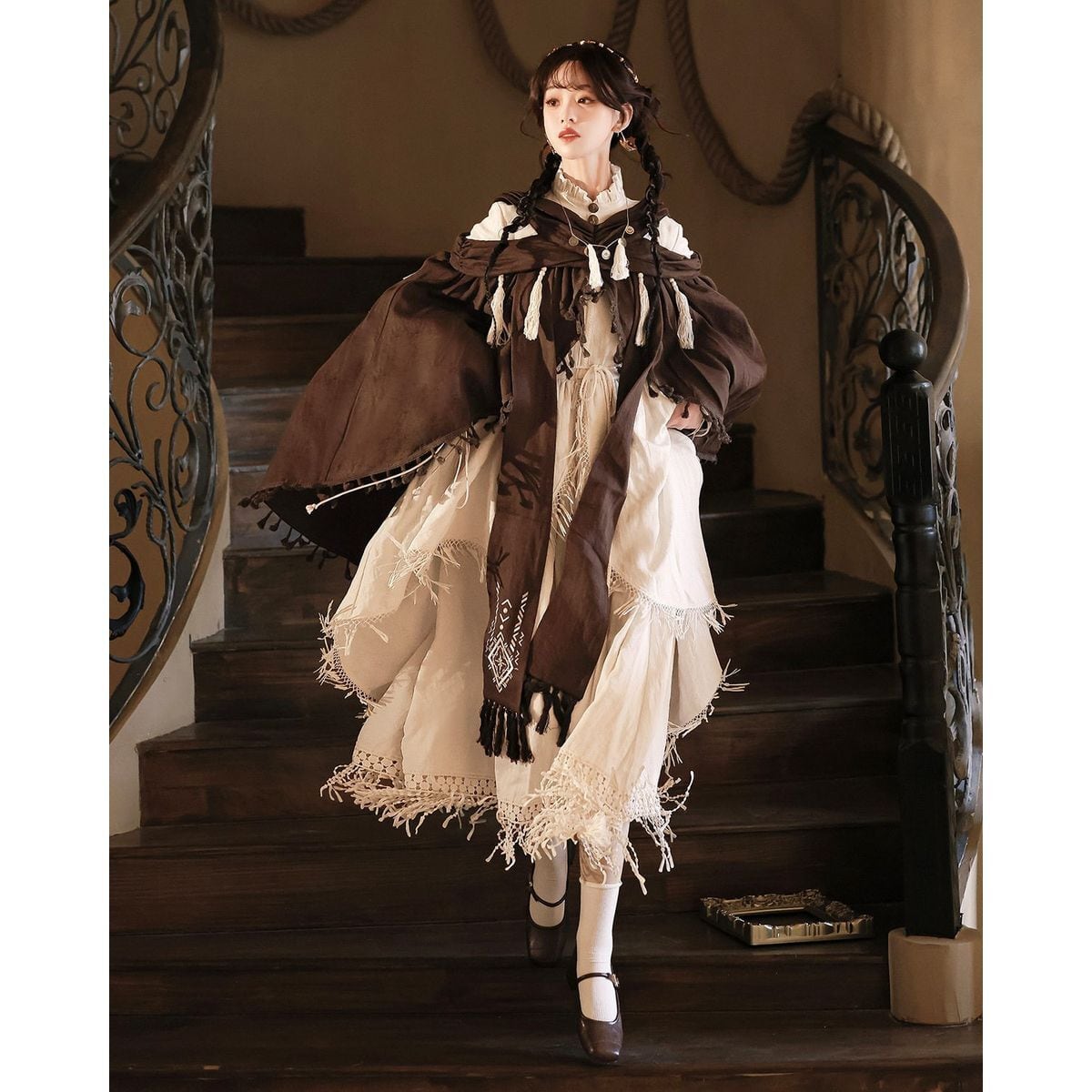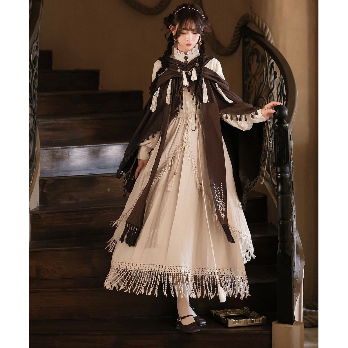 ボヘミアンクロスショルダーマキシワンピース