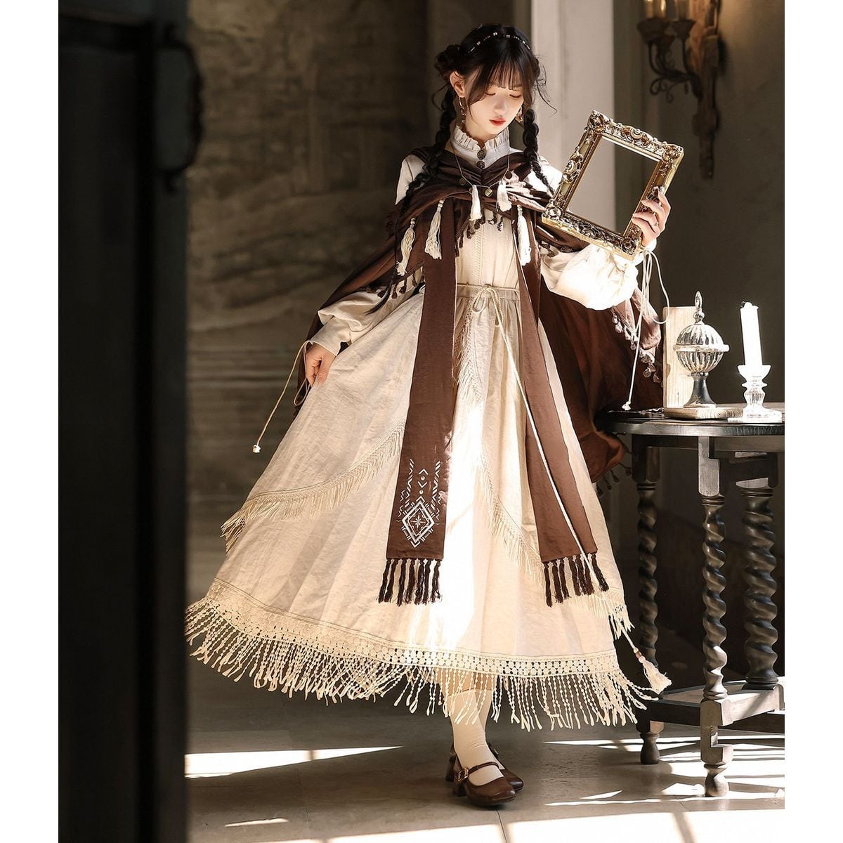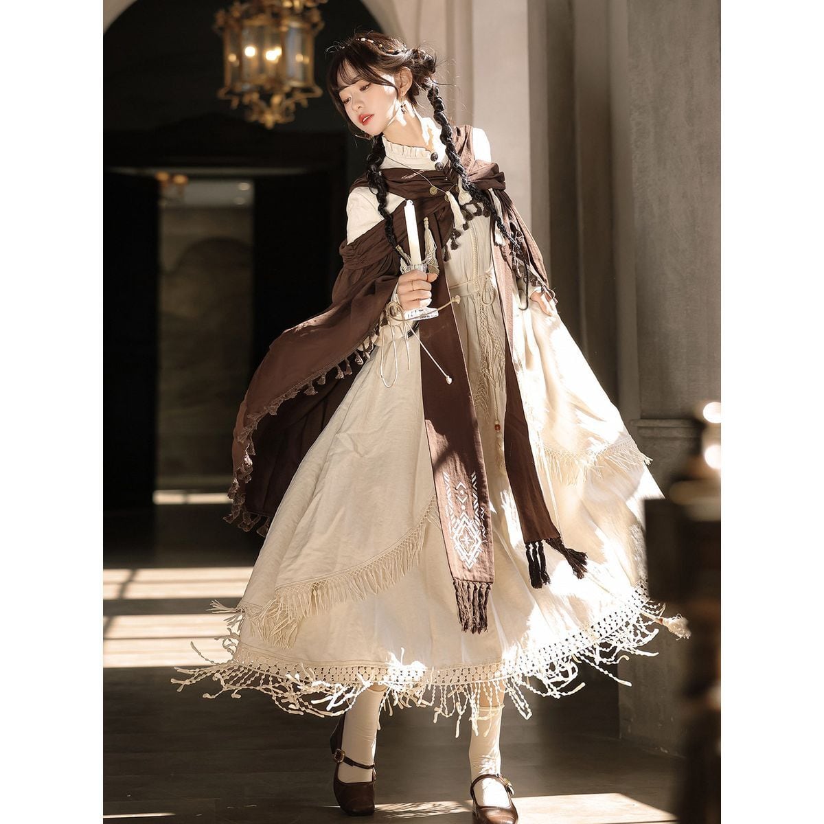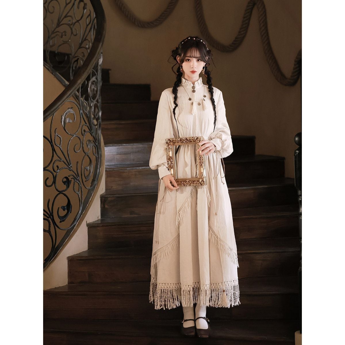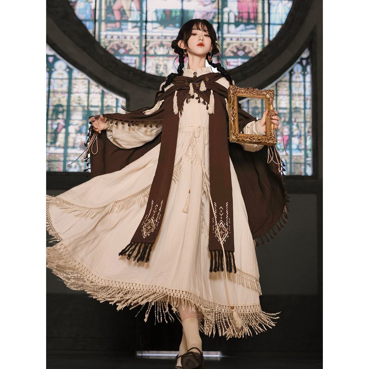 ボヘミアンクロスショルダーマキシワンピース