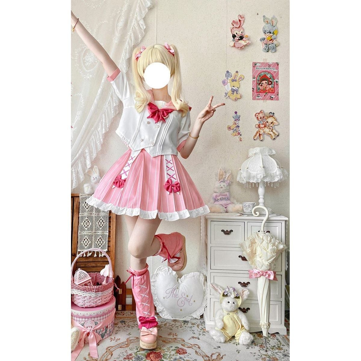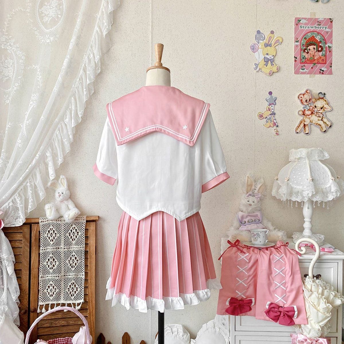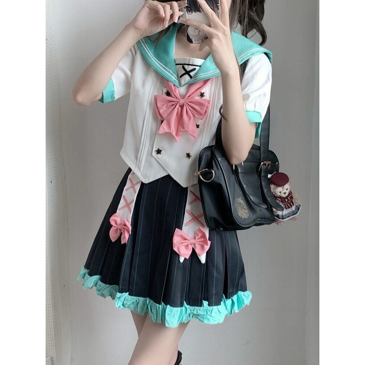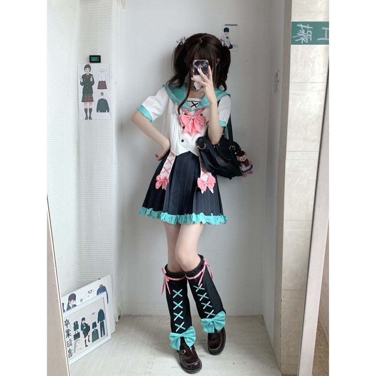 レースアップレッグウォーマー付きプリーツセーラー服セット