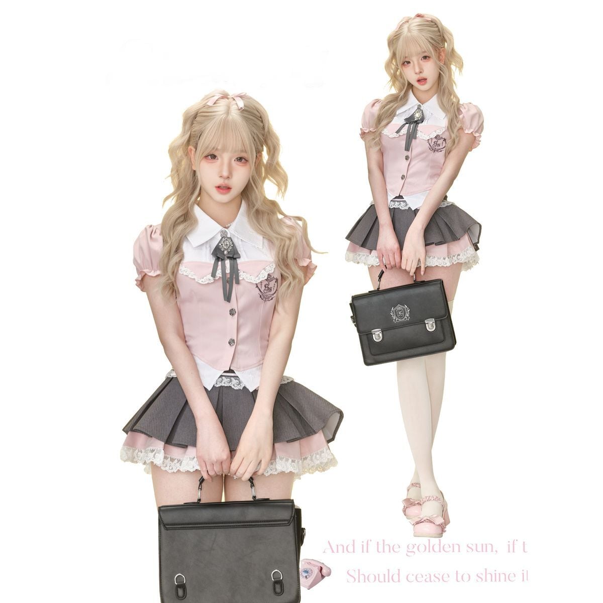 レース重ねプリーツ制服セットアップ:スカート