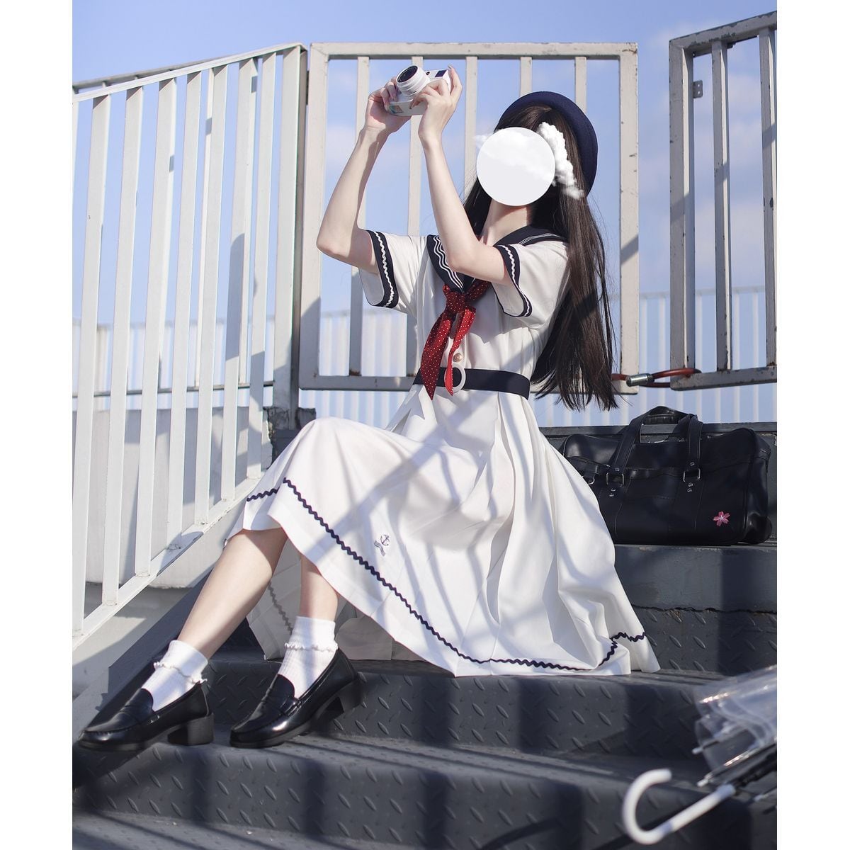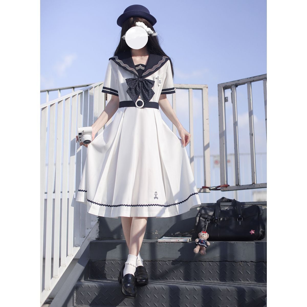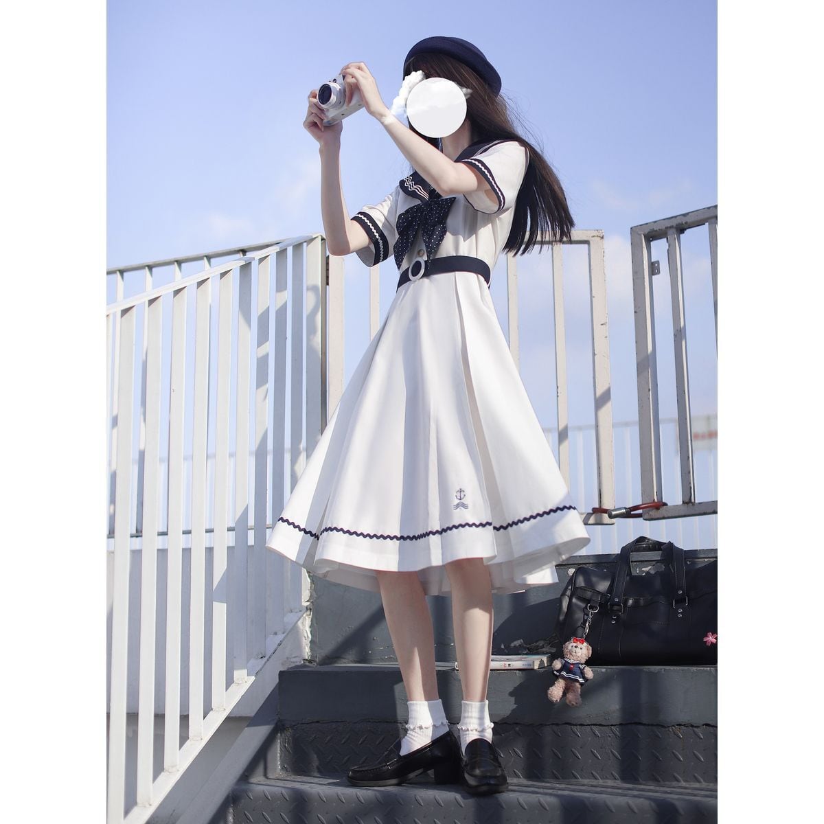 セーラー襟フレアロングワンピース