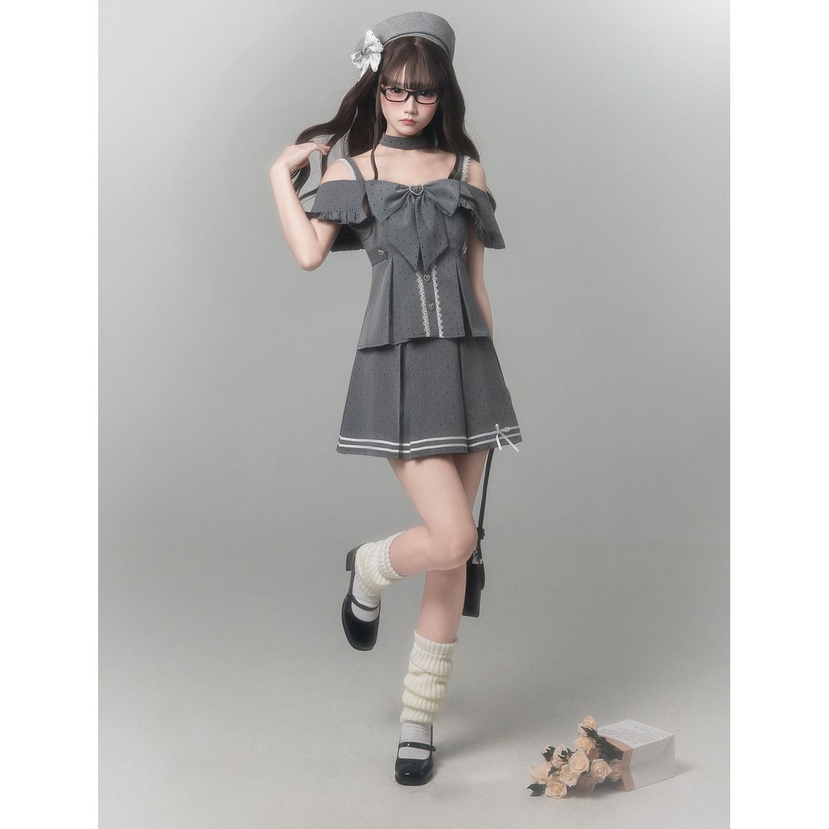 グレージュドールオフショルセットアップ:帽子