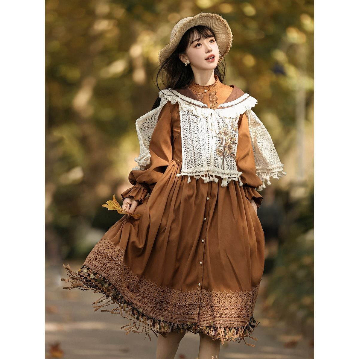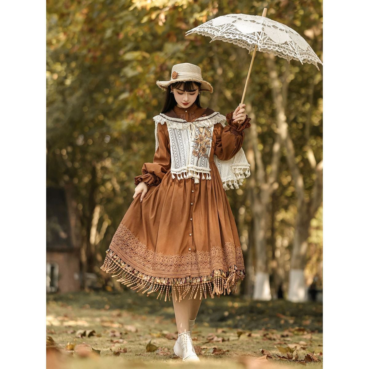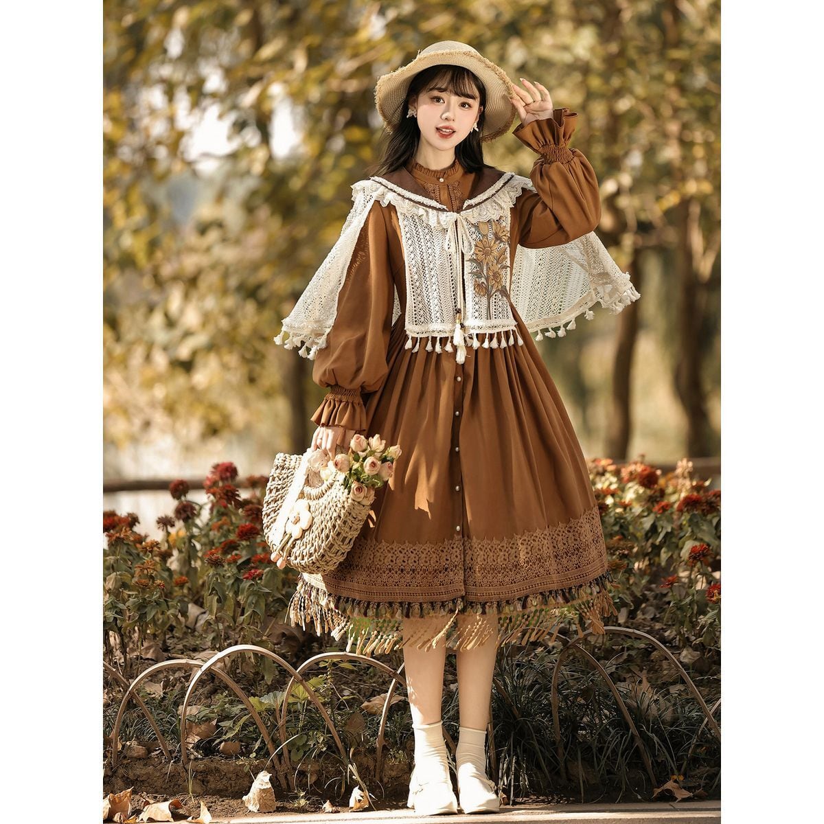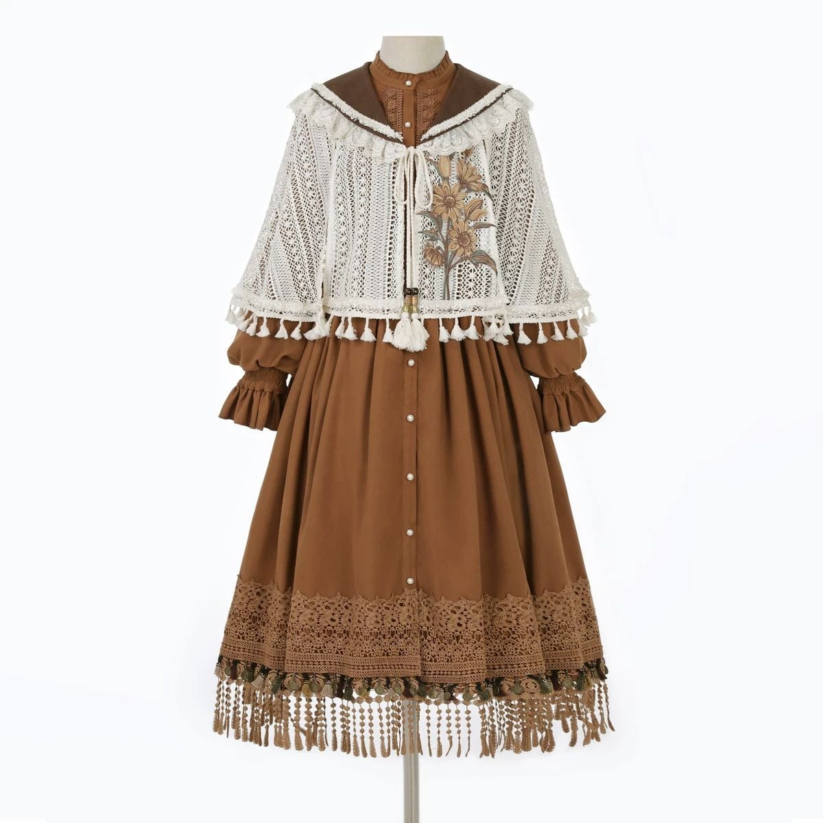 編み花の祈り・タッセルケープ付き森ガーリーワンピースセット