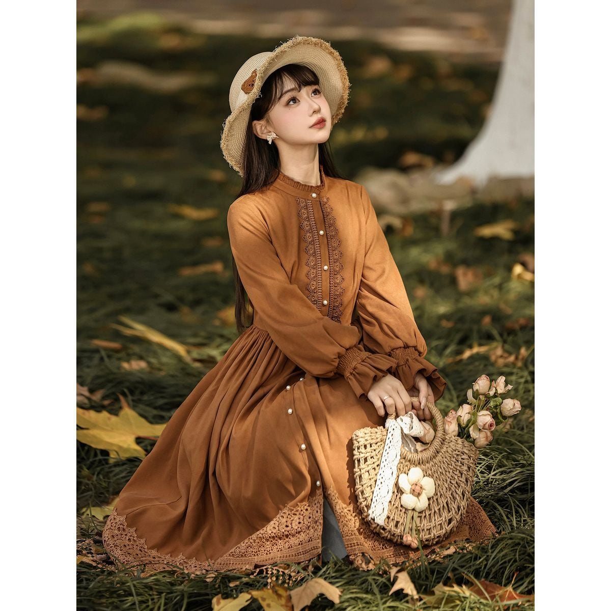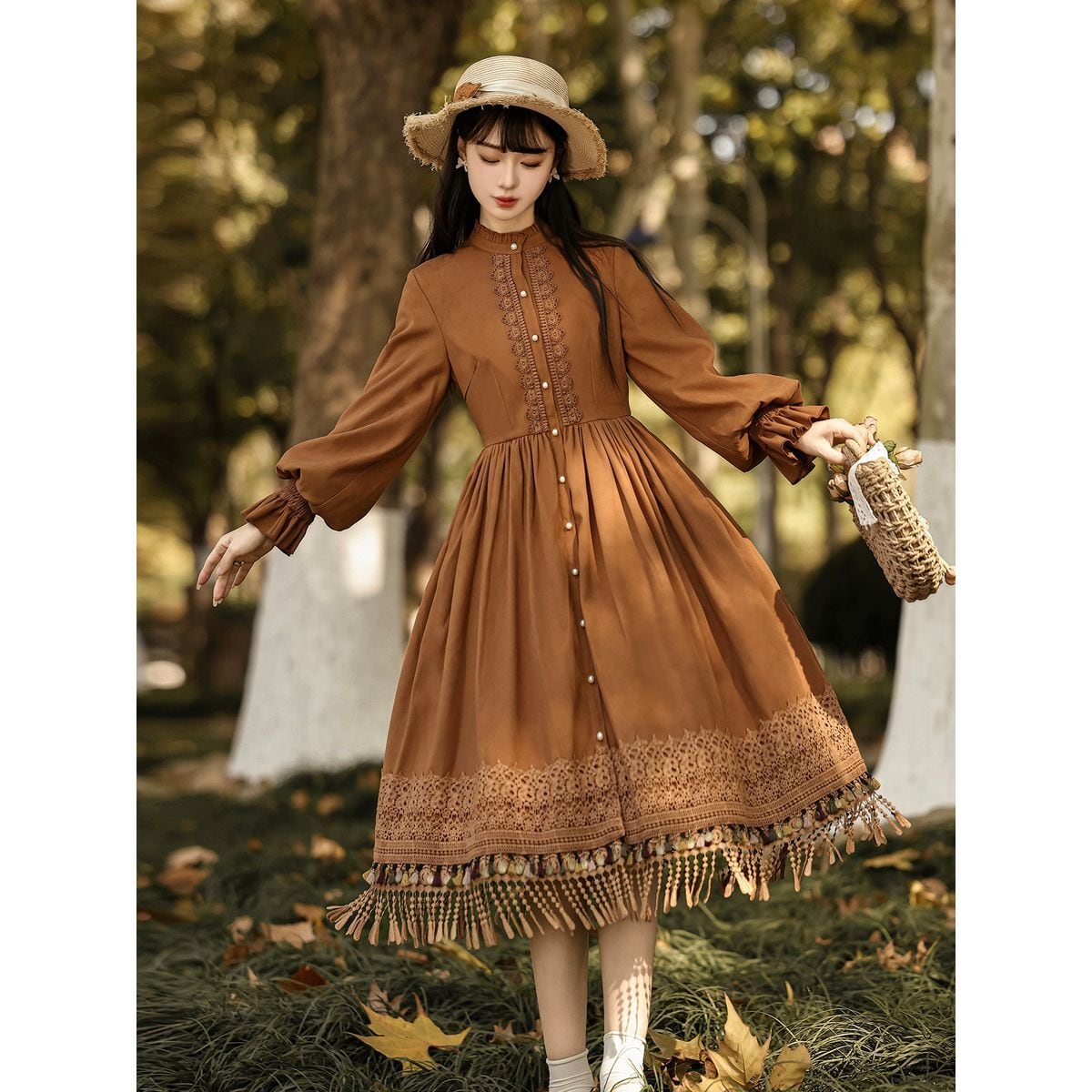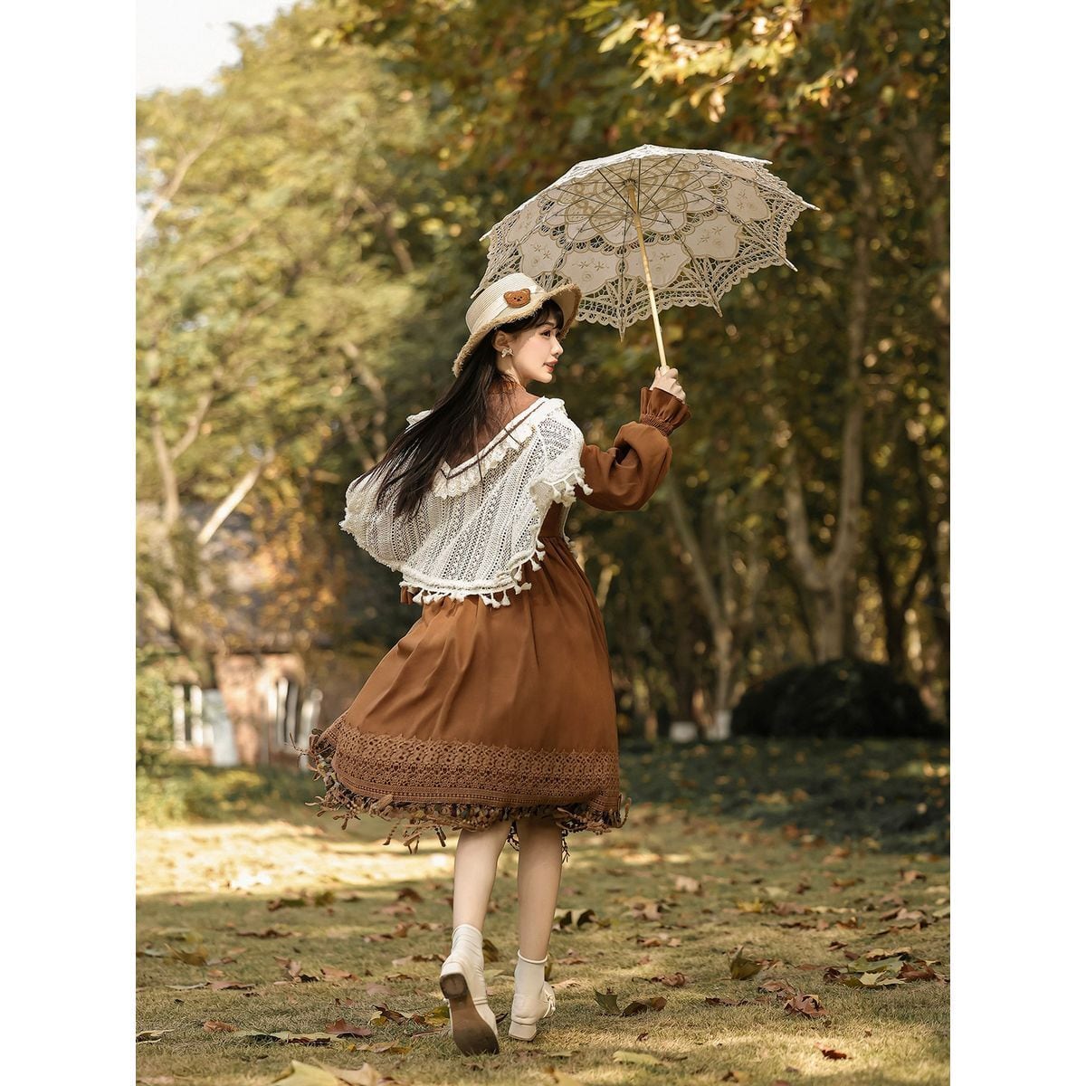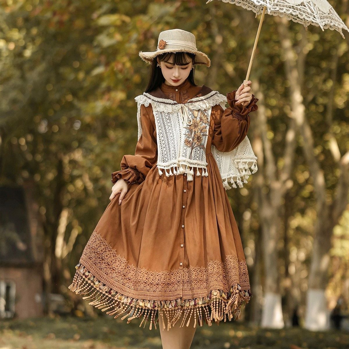 編み花の祈り・タッセルケープ付き森ガーリーワンピースセット