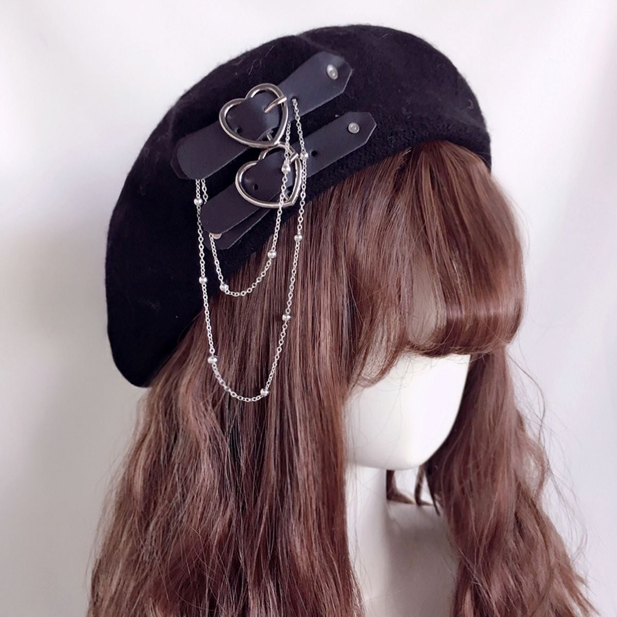 サイドハートストラップチェーン付きベレー帽