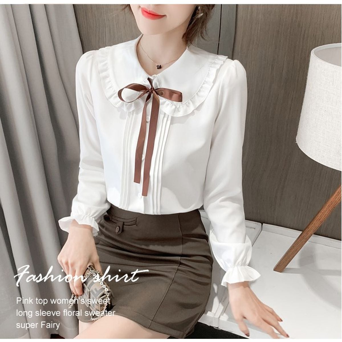 フリル襟ブラウンリボン付きブラウス 地雷系 量産型