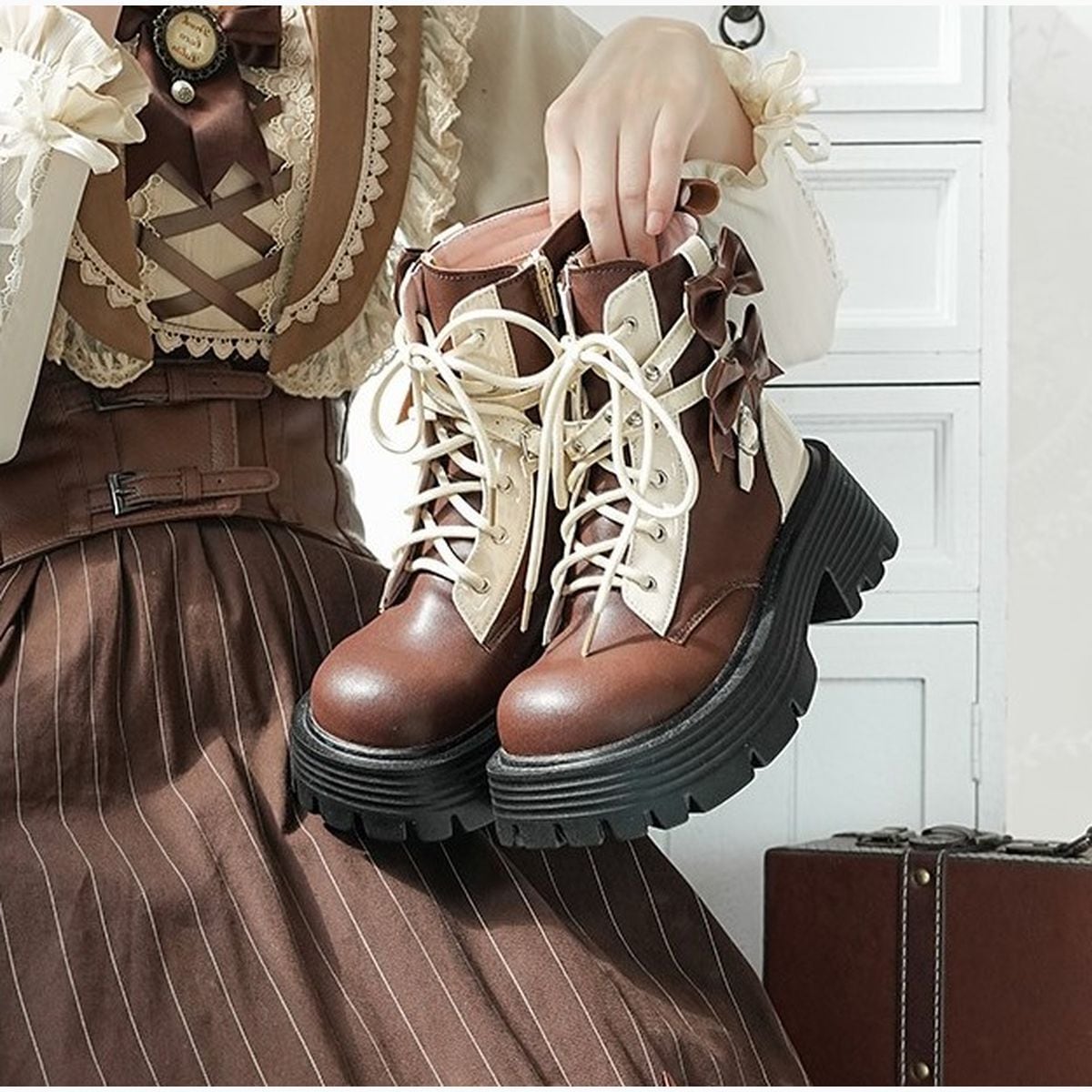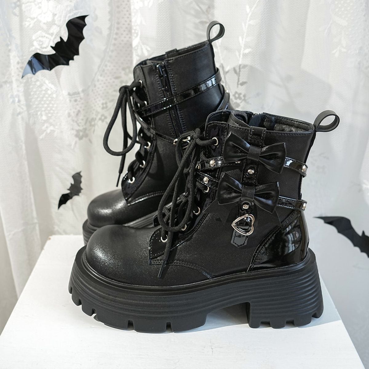 リボン付きレースアップブーツ