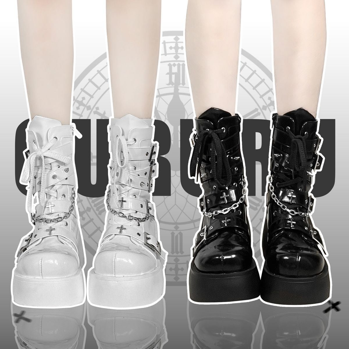 チェーン付き十字厚底ブーツ