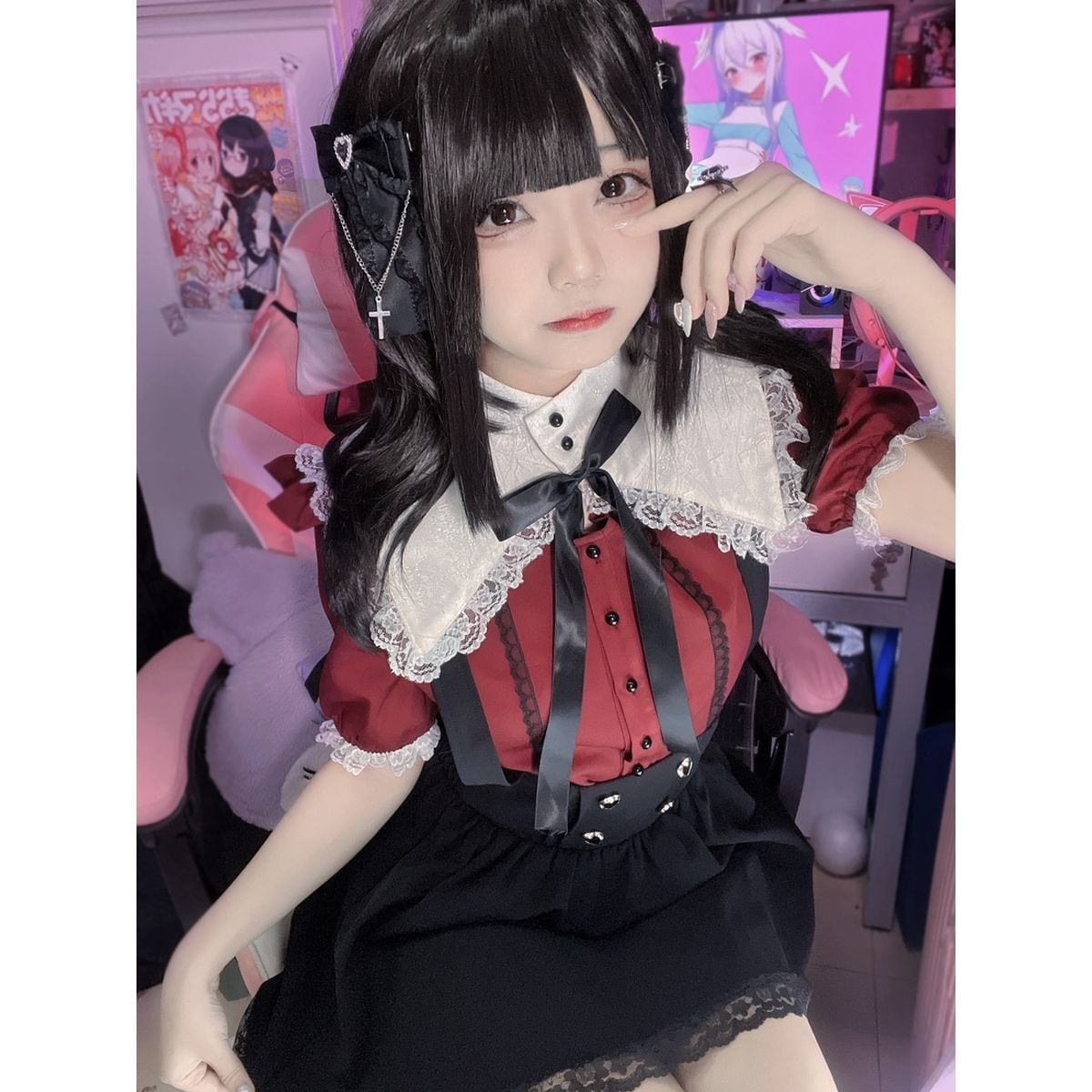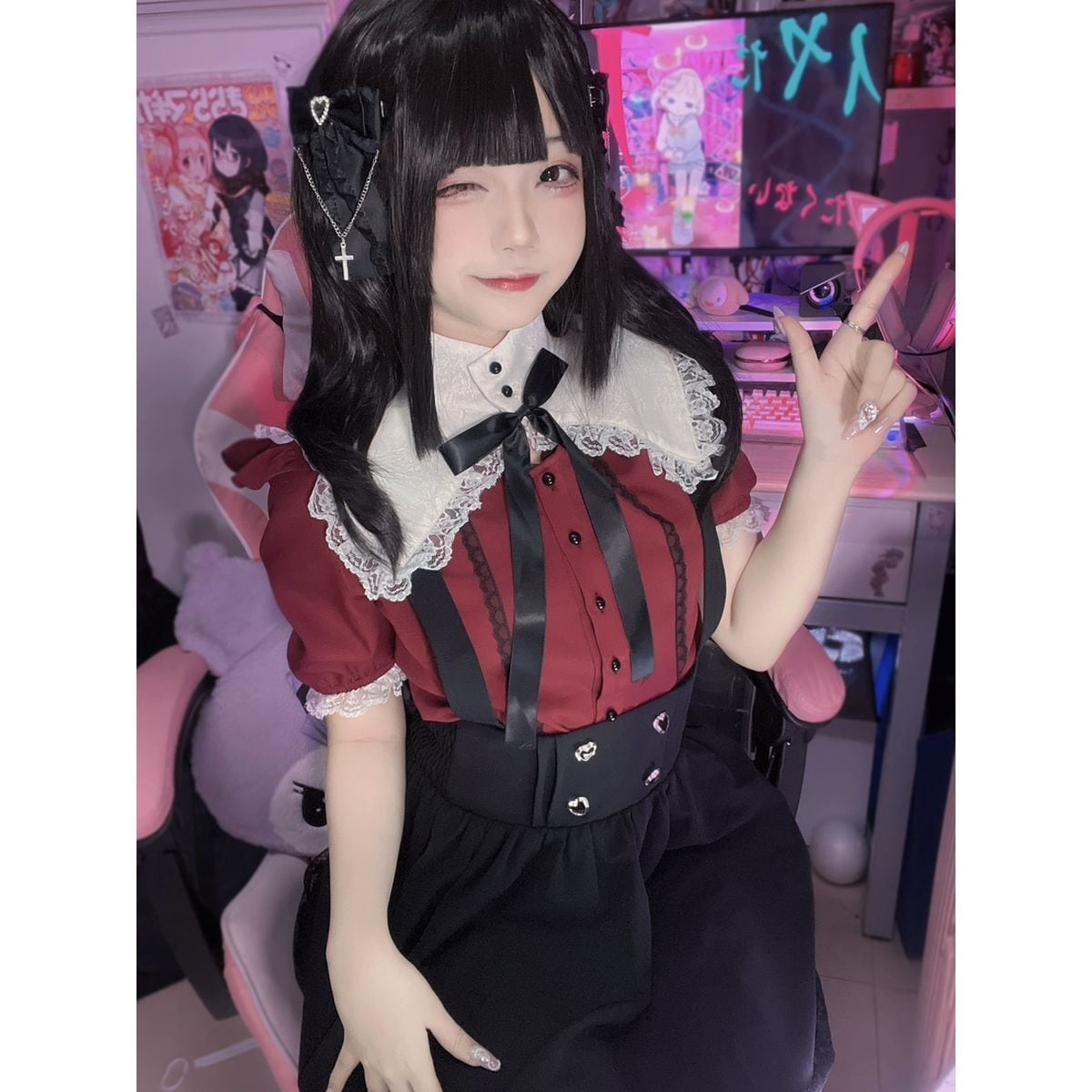 地雷系ハートボタンレースジャンスカ