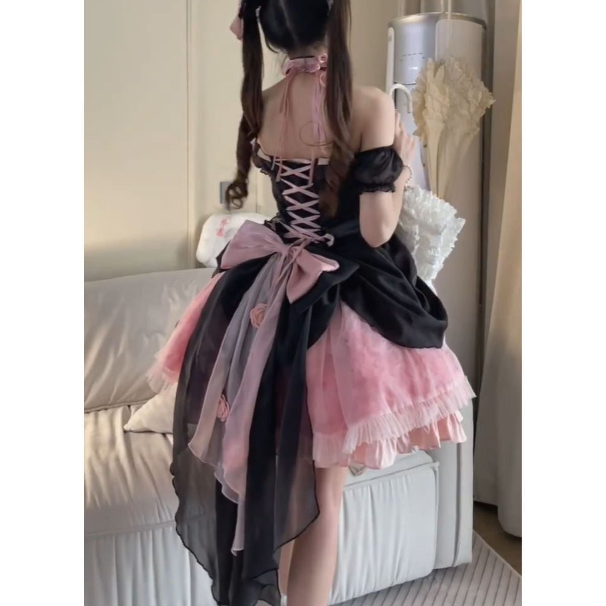 ピンク薔薇×リボンロリータドレス