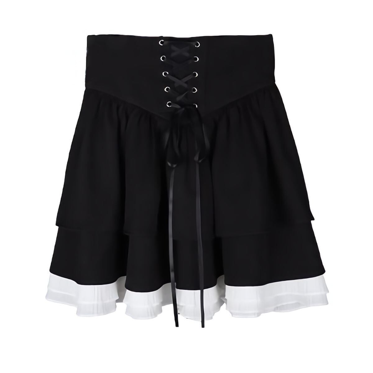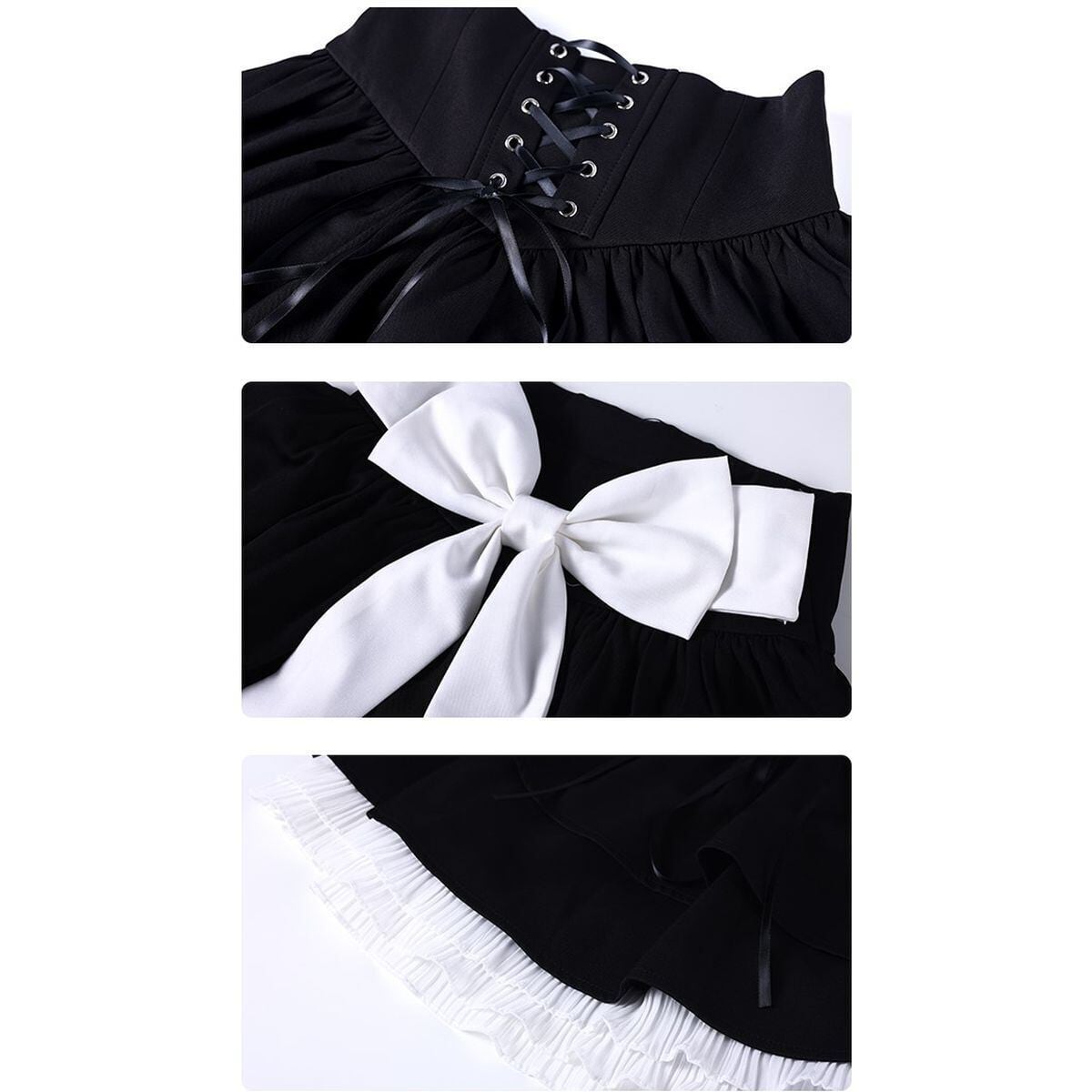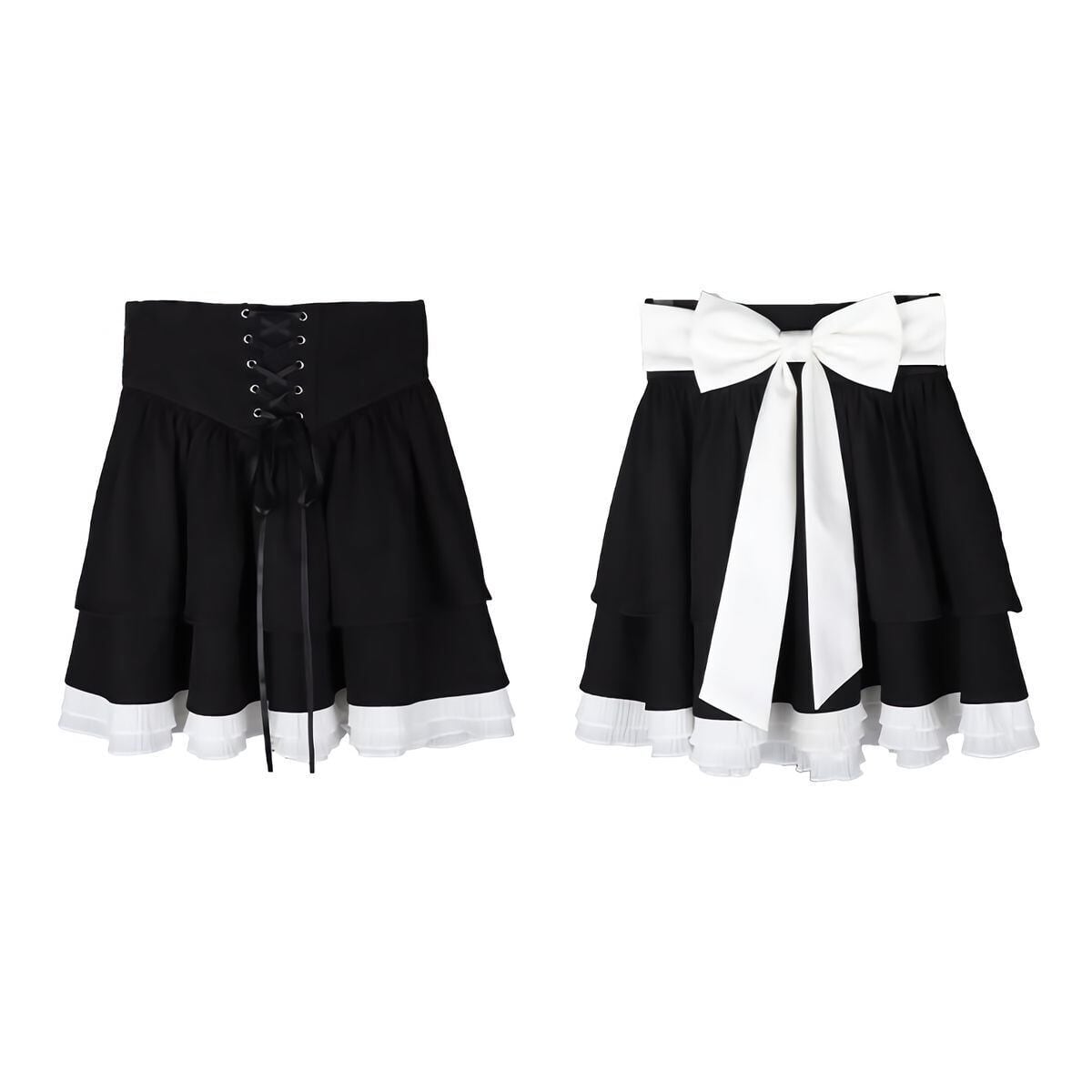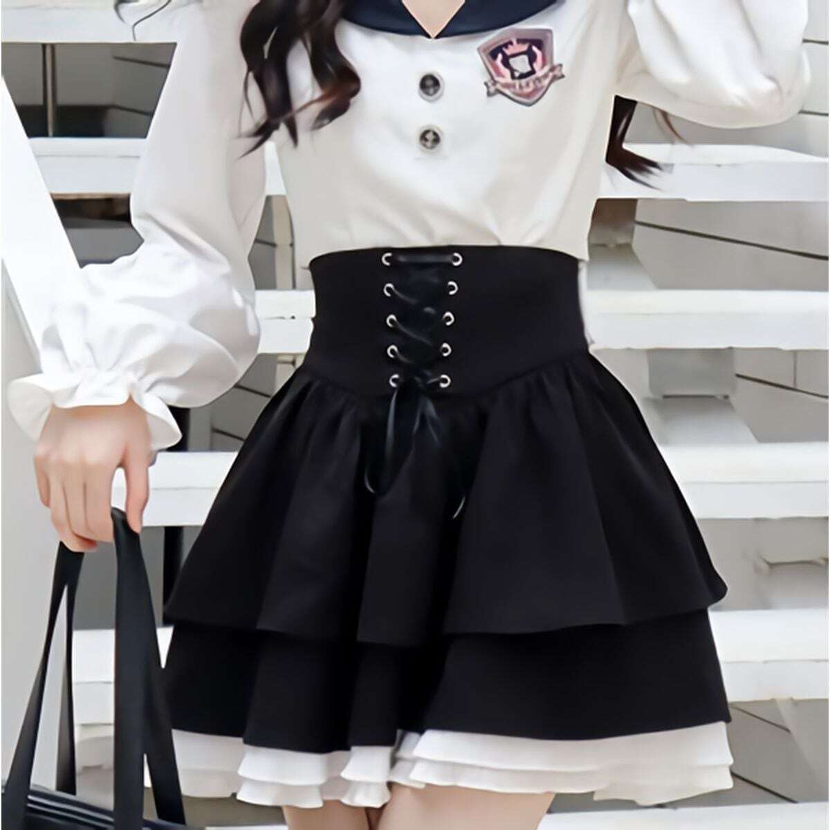バックリボンレースアップフリルスカート