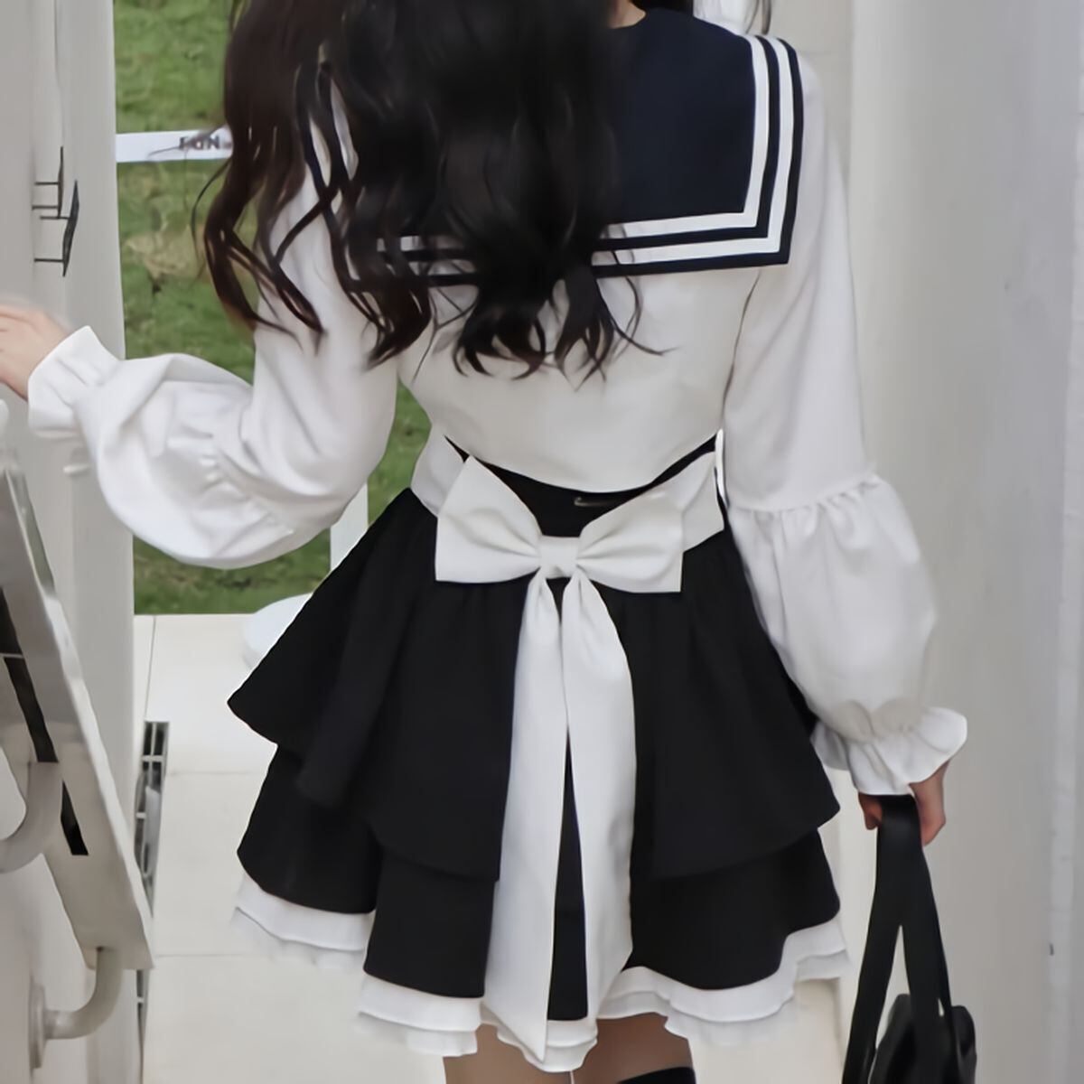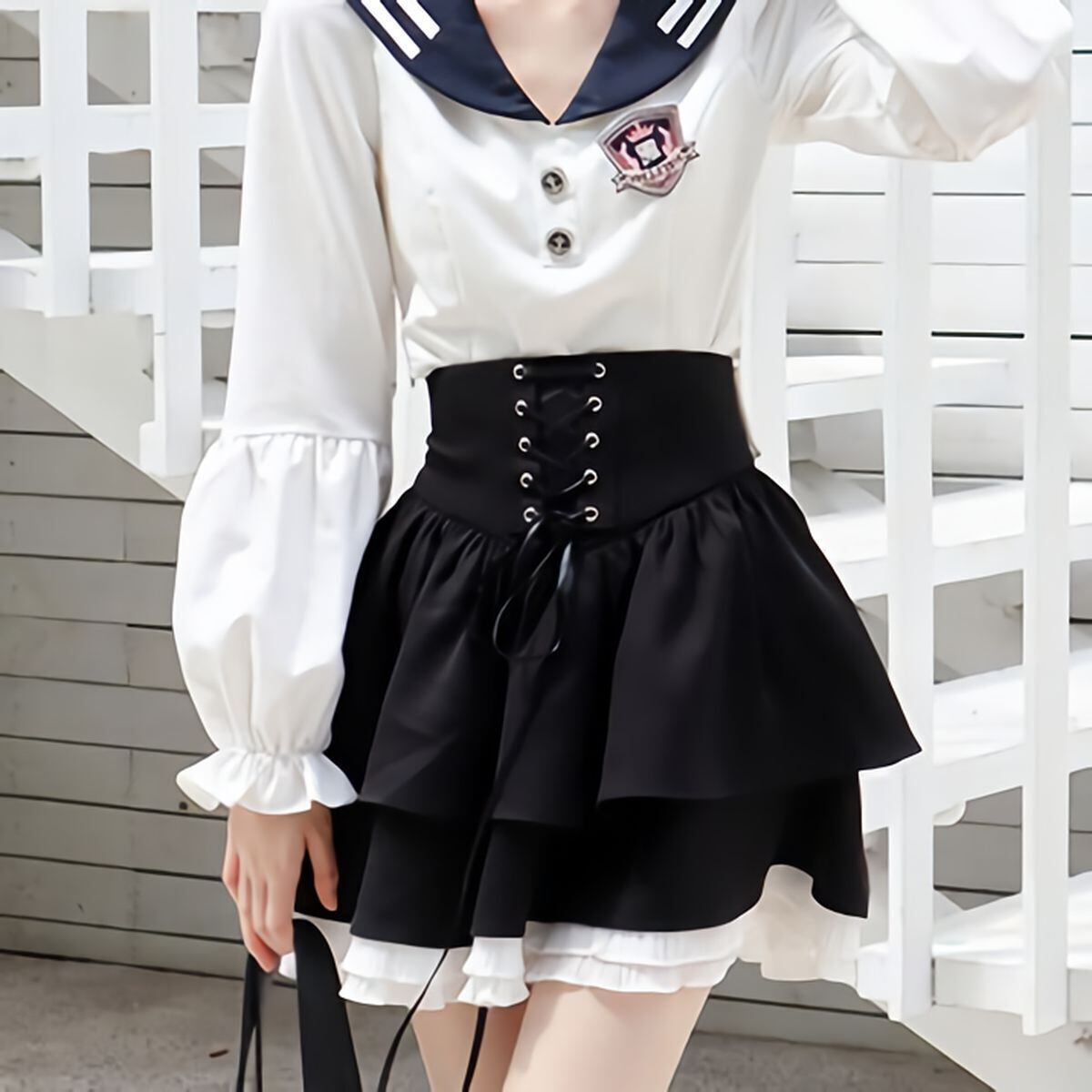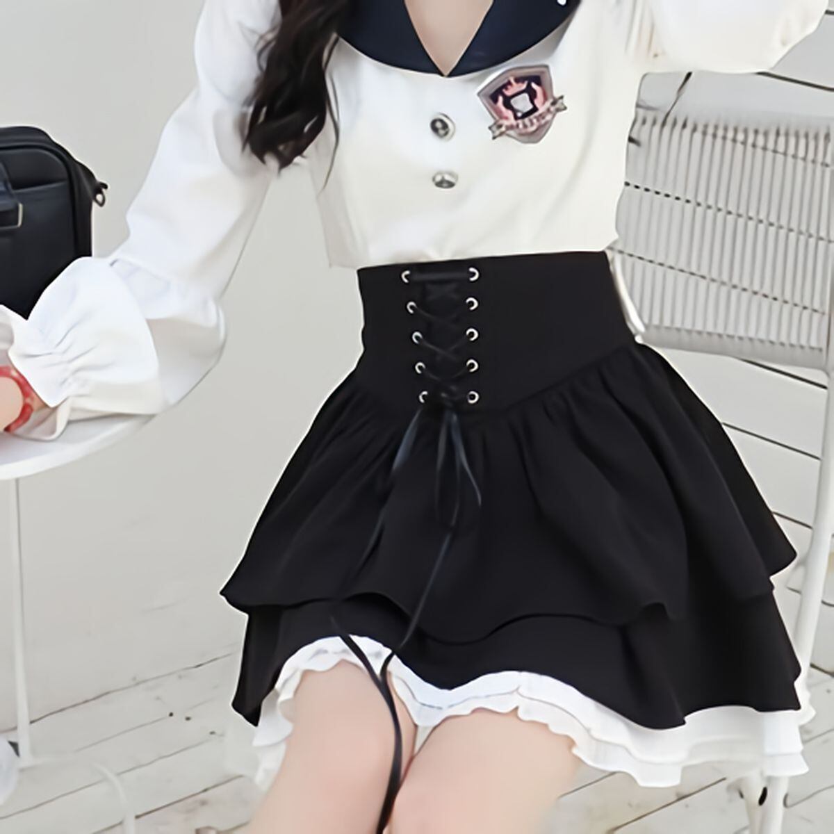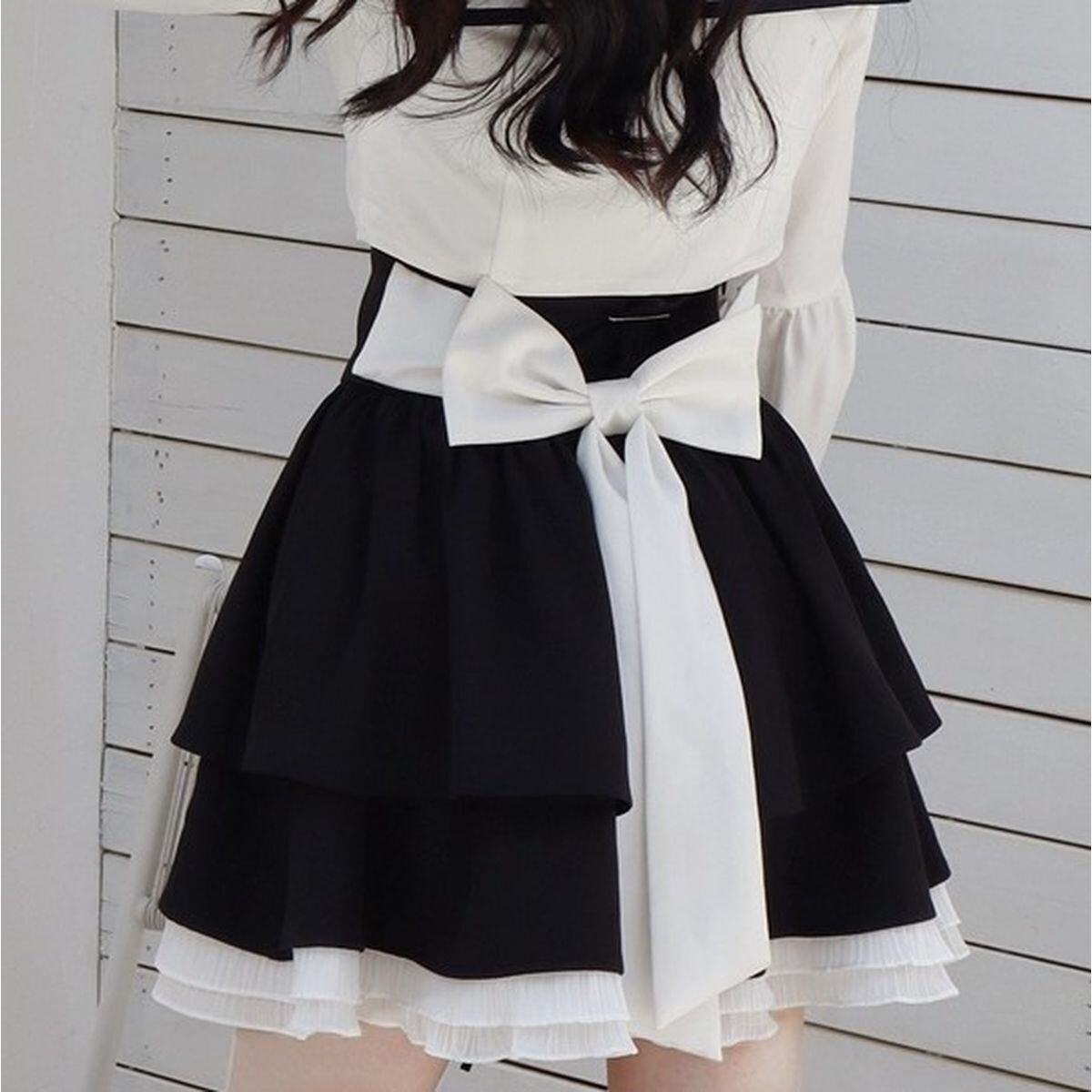 バックリボンレースアップフリルスカート