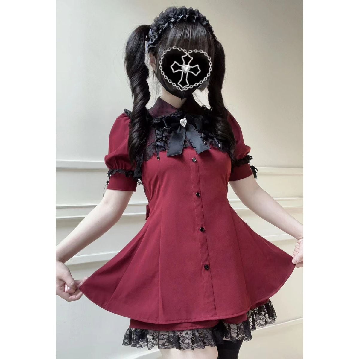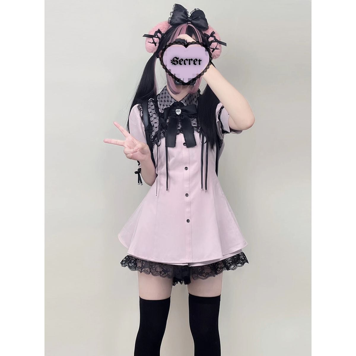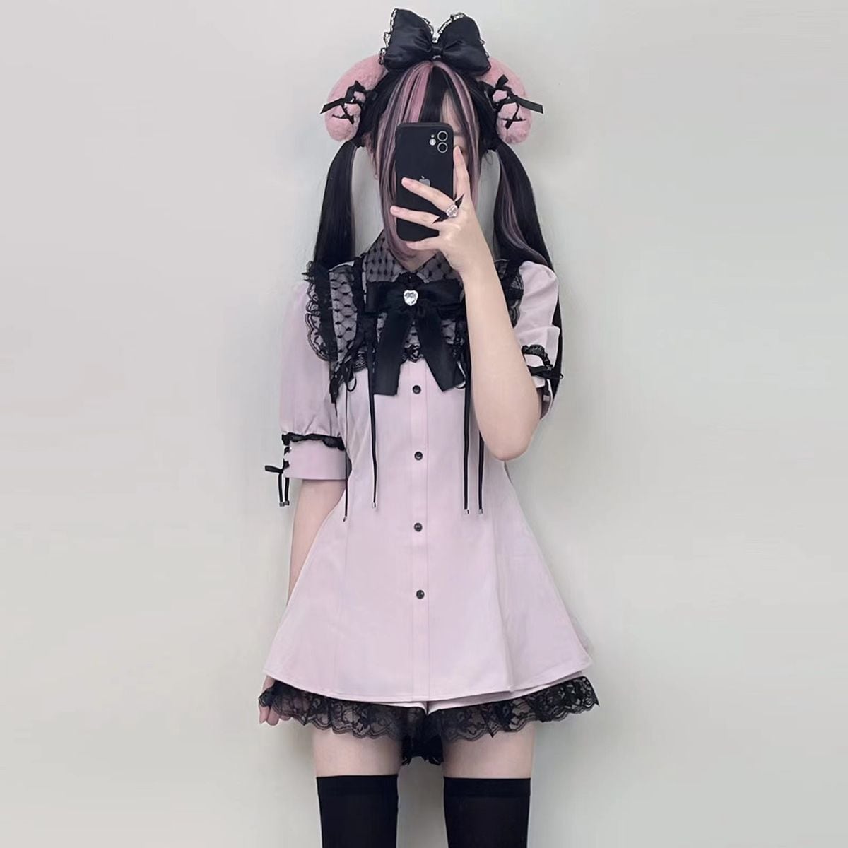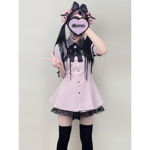 地雷系半袖レースセットアップ