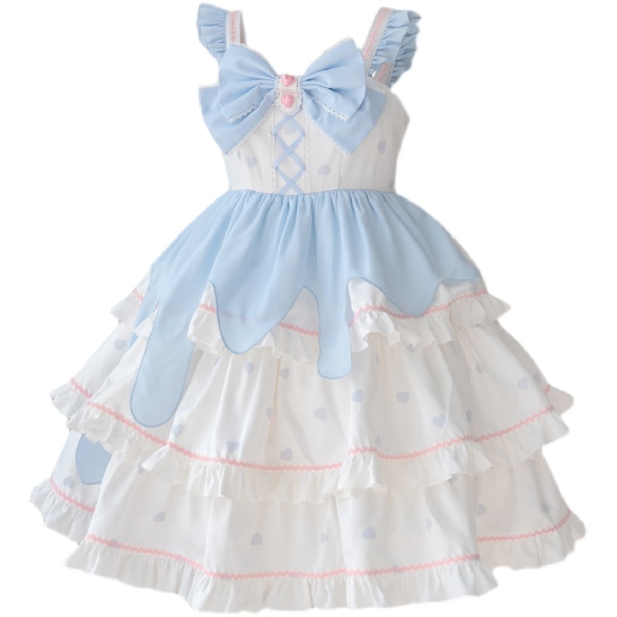 水色xホワイトフロントリボンティアードJSK