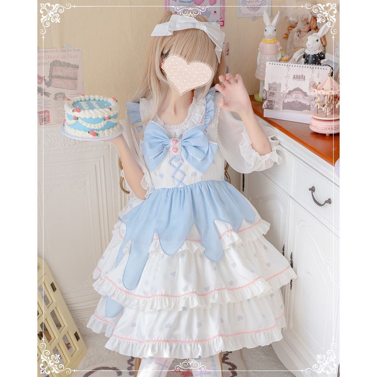 水色xホワイトフロントリボンティアードJSK:髪飾り