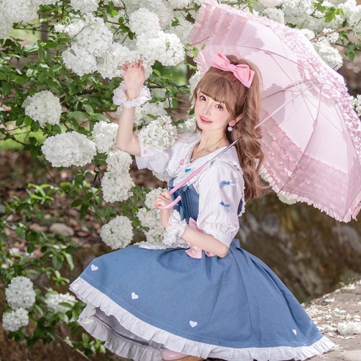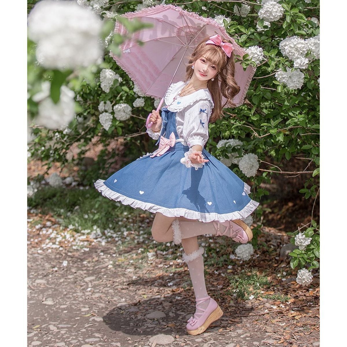 デニムカラージャンスカセットアップ:ブラウス・エプロン
