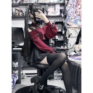 地雷系レースオープンショルダーセーター