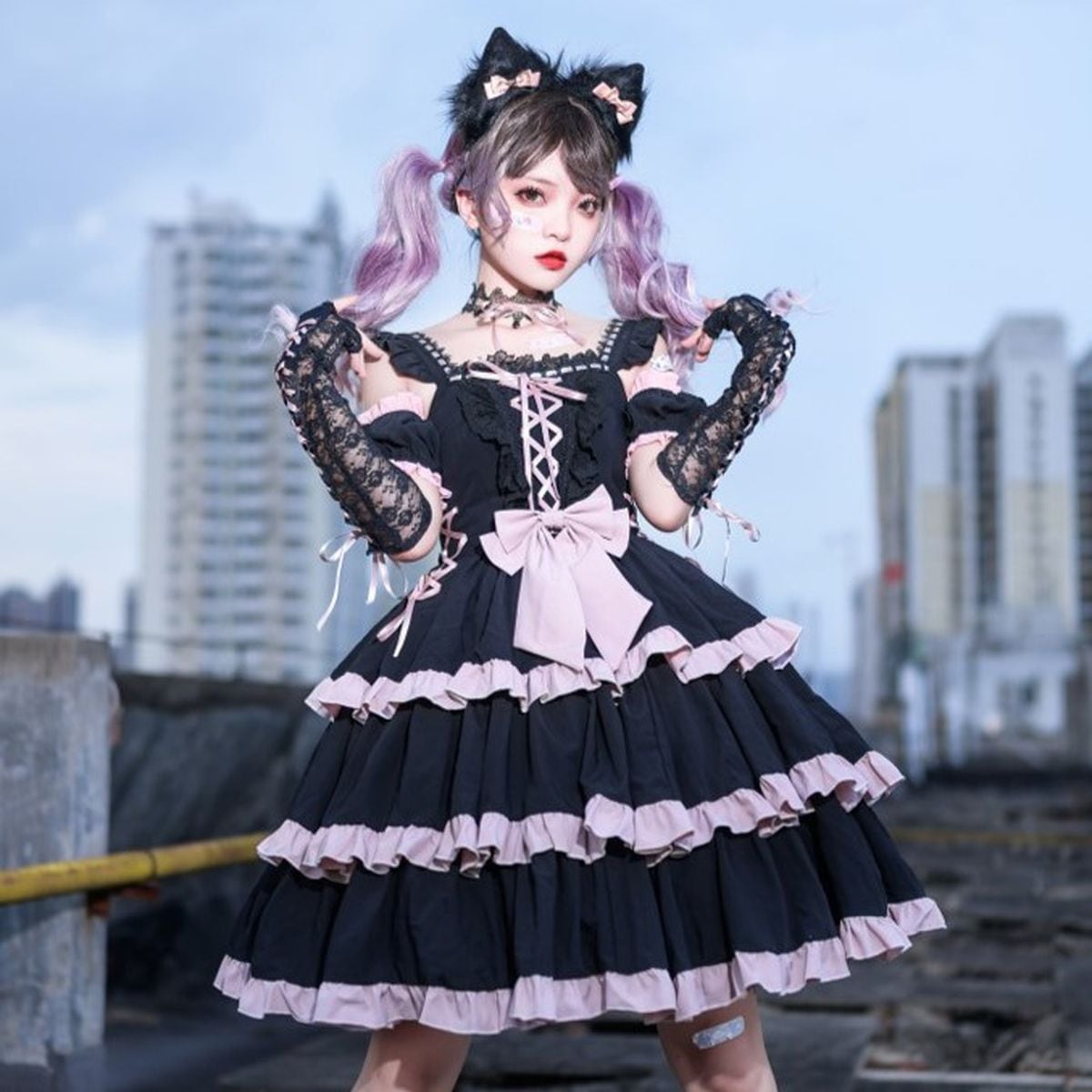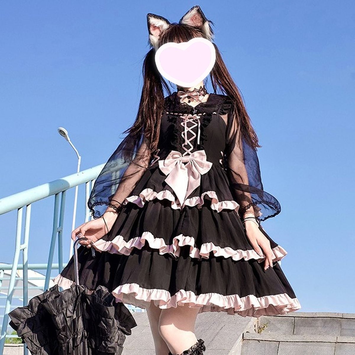 レースアップフリルティアードジャンスカ:首飾り+髪飾りセット