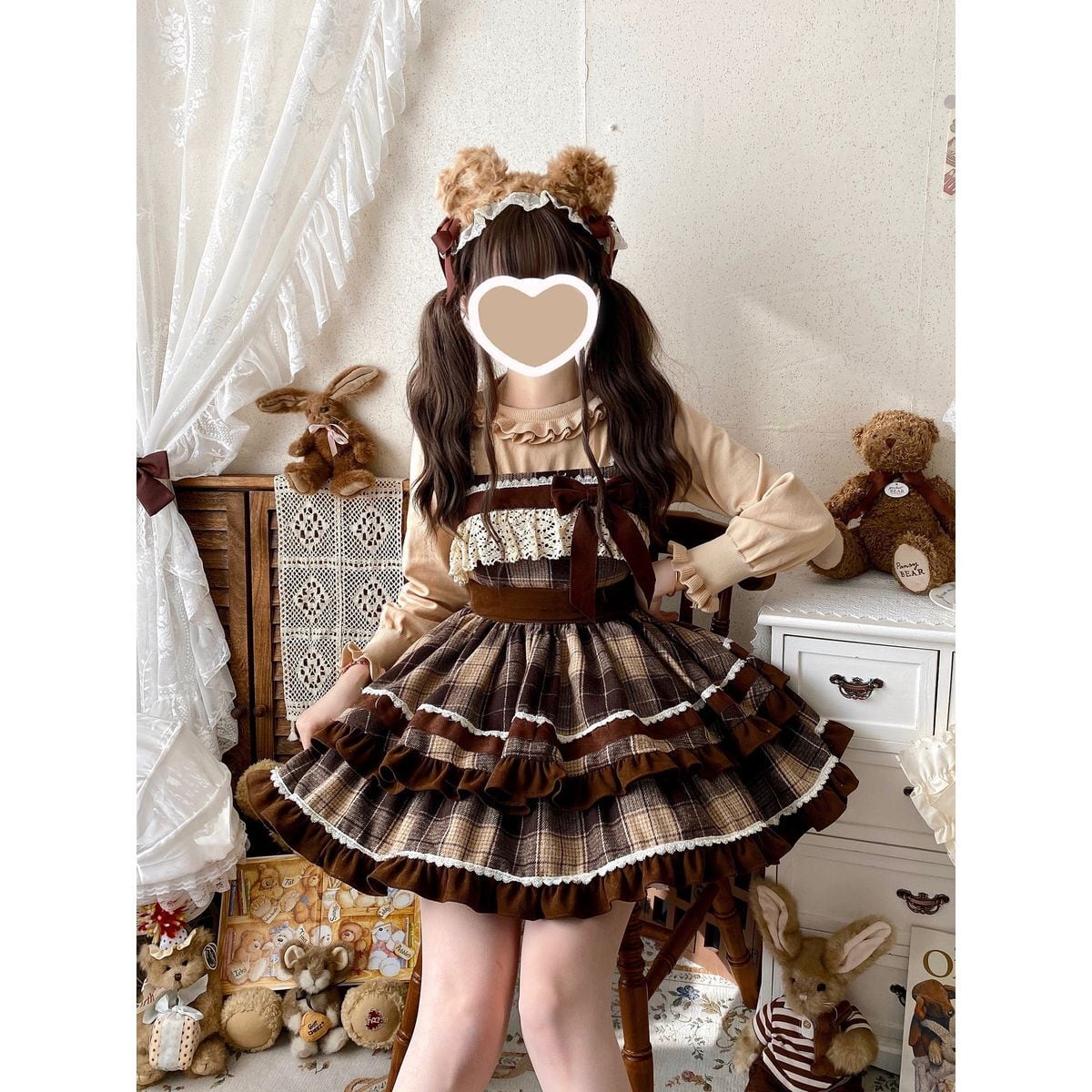 チェック柄フリルリボン付きジャンスカ
