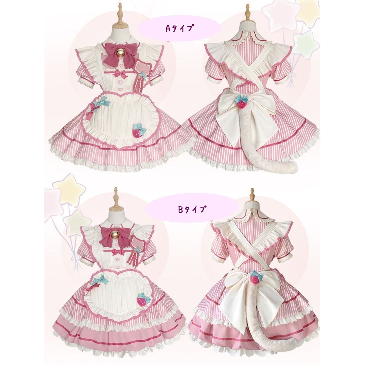イチゴストライプメイドワンピース:小物ありセット(Bタイプ)
