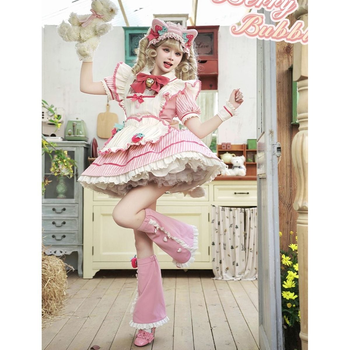 イチゴストライプメイドワンピース:小物なしセット(Bタイプ)