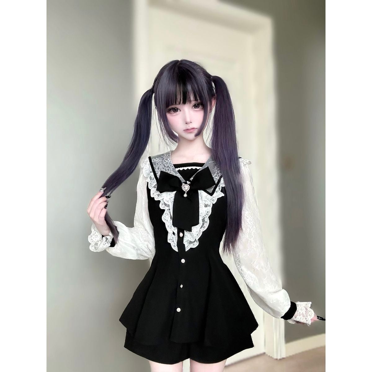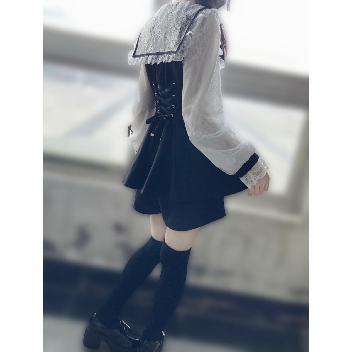 地雷系セーラー襟レースワンピース