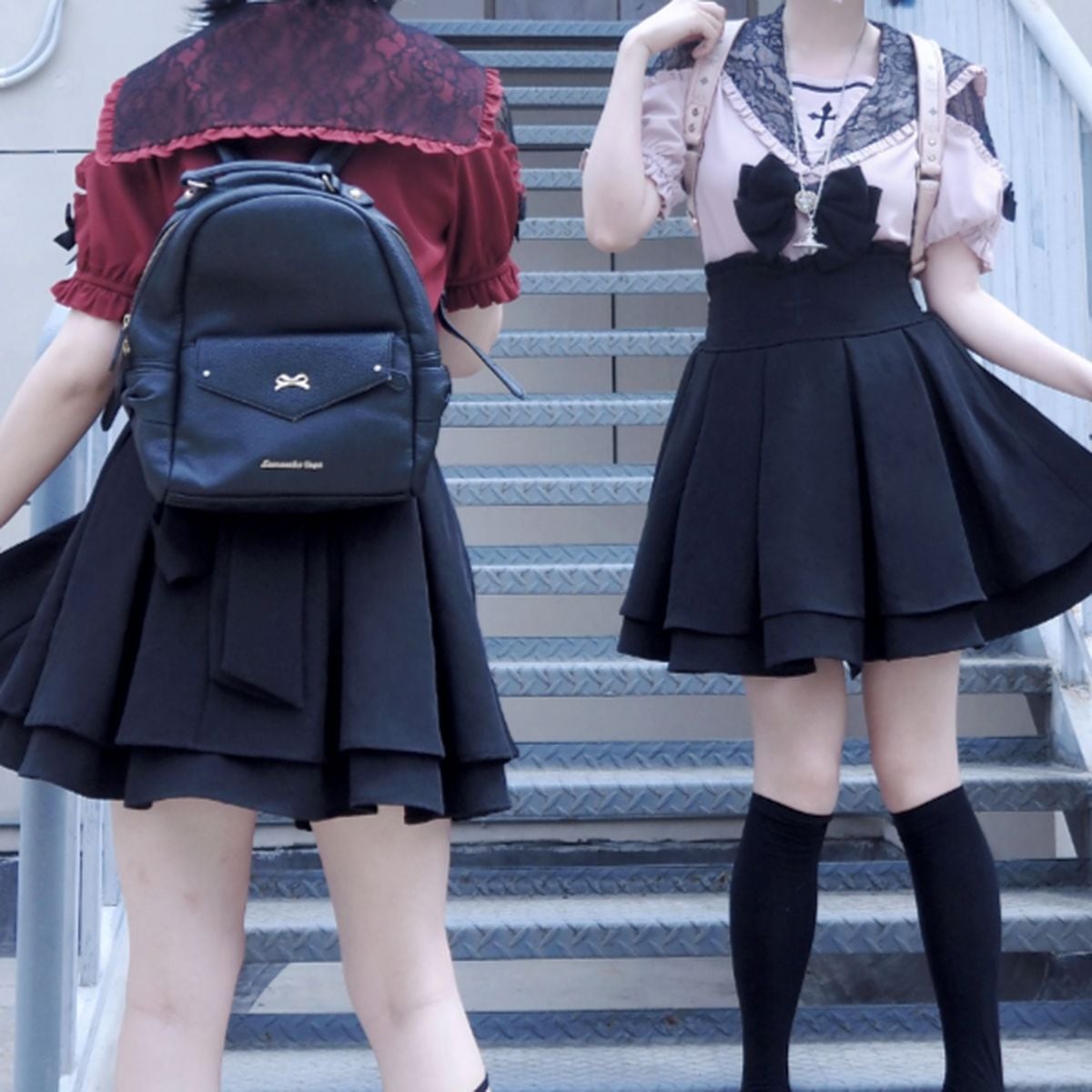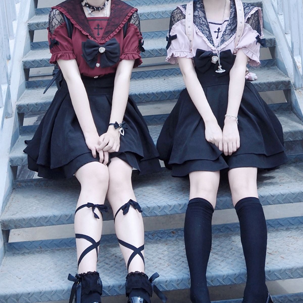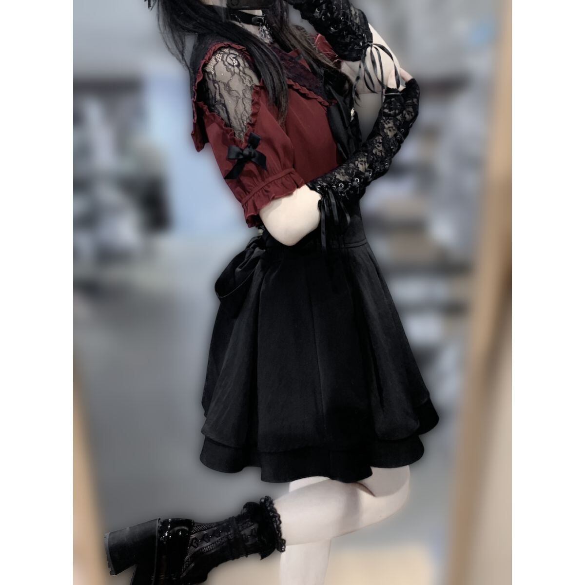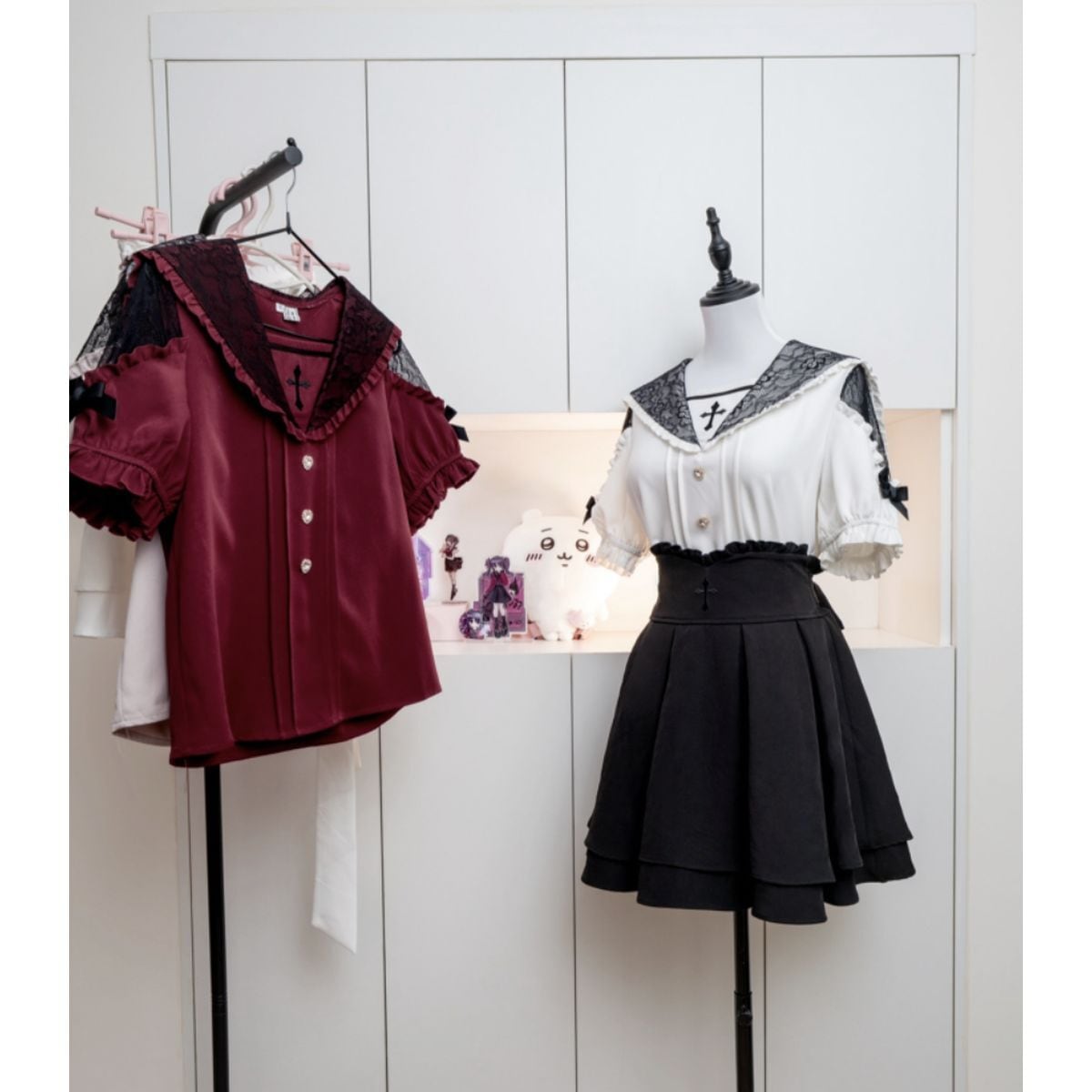 地雷系肩出し十字ブラウス+スカートセット:ブラウス
